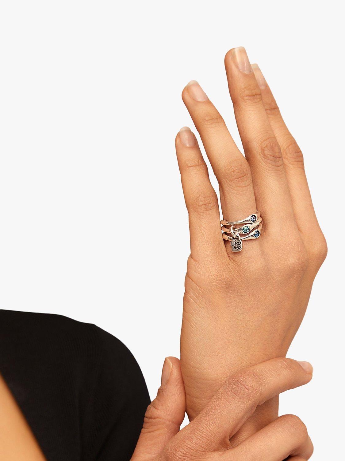 UNOde50Happy Swarovski Crystal Stacking Ring Set, Silver