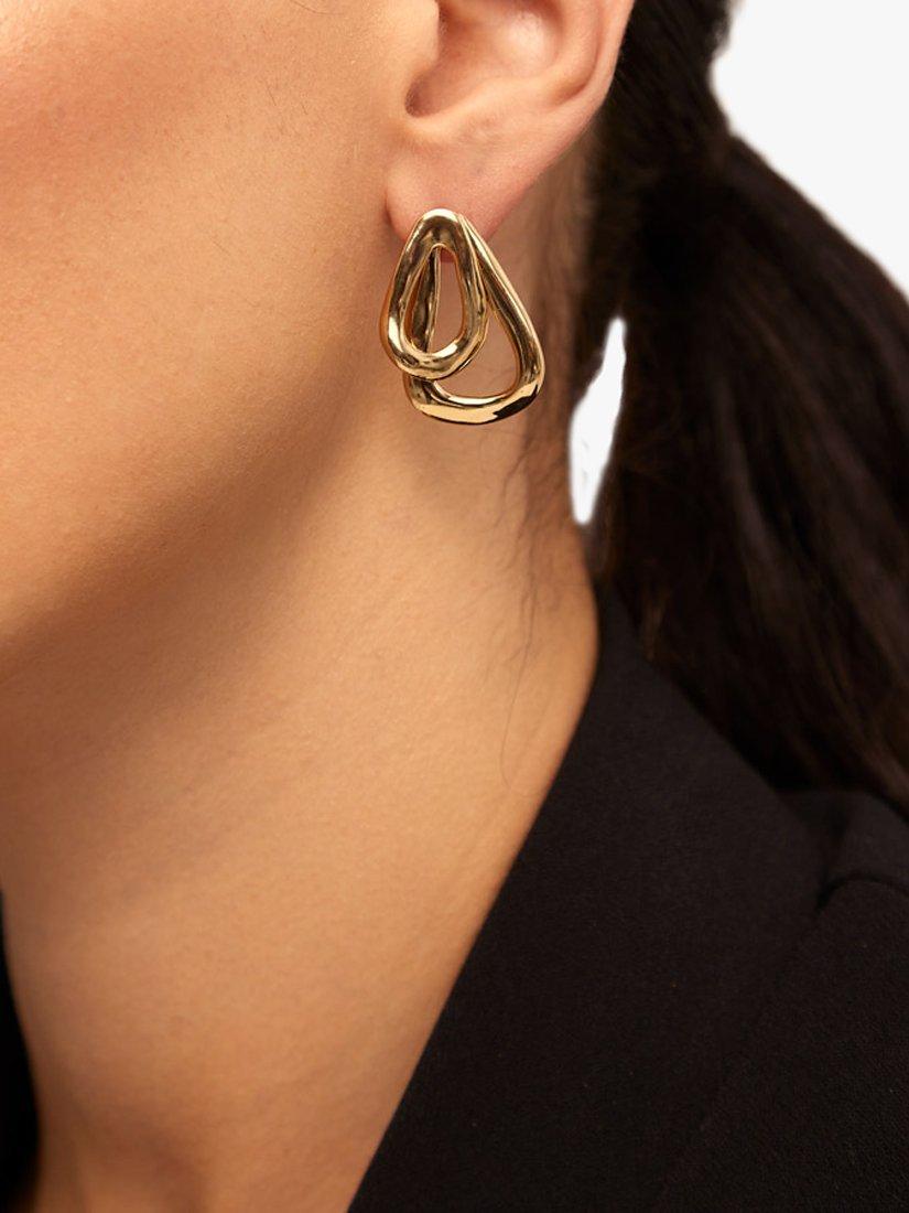 With an original design in the form of organic links superimposed in plated metal, these earrings are an accessory that attracts attention for their simplicity and elegance. A UNOde50 design, made in Spain and 100% handmade.