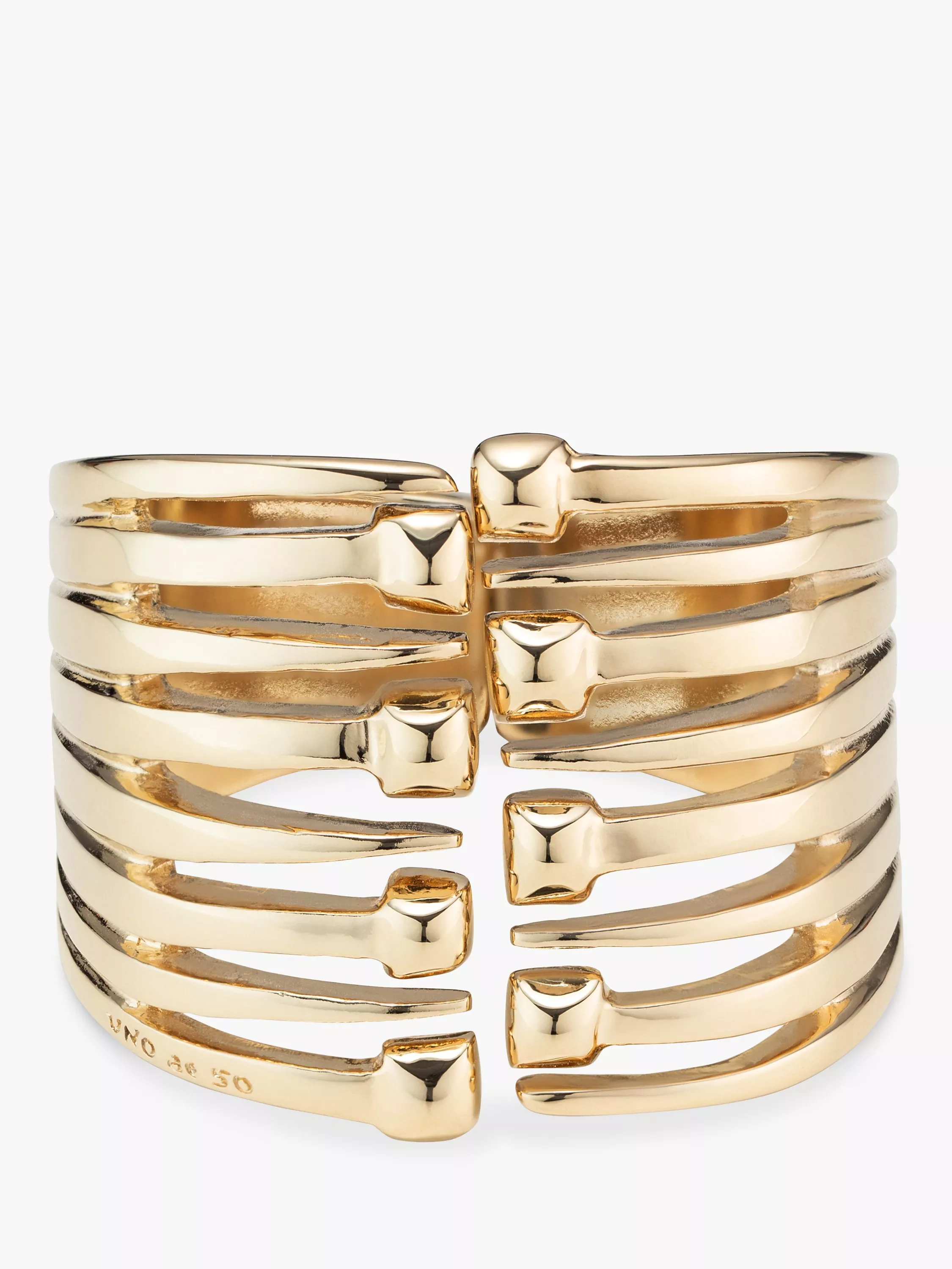 The Matching bracelet has an open and wide design, inspired by the iconic symbol of the UNOde50 nail and is composed by small nail heads at its ends. This piece of jewellery has been handmade in Spain, achieving a unique and incomparable finish.