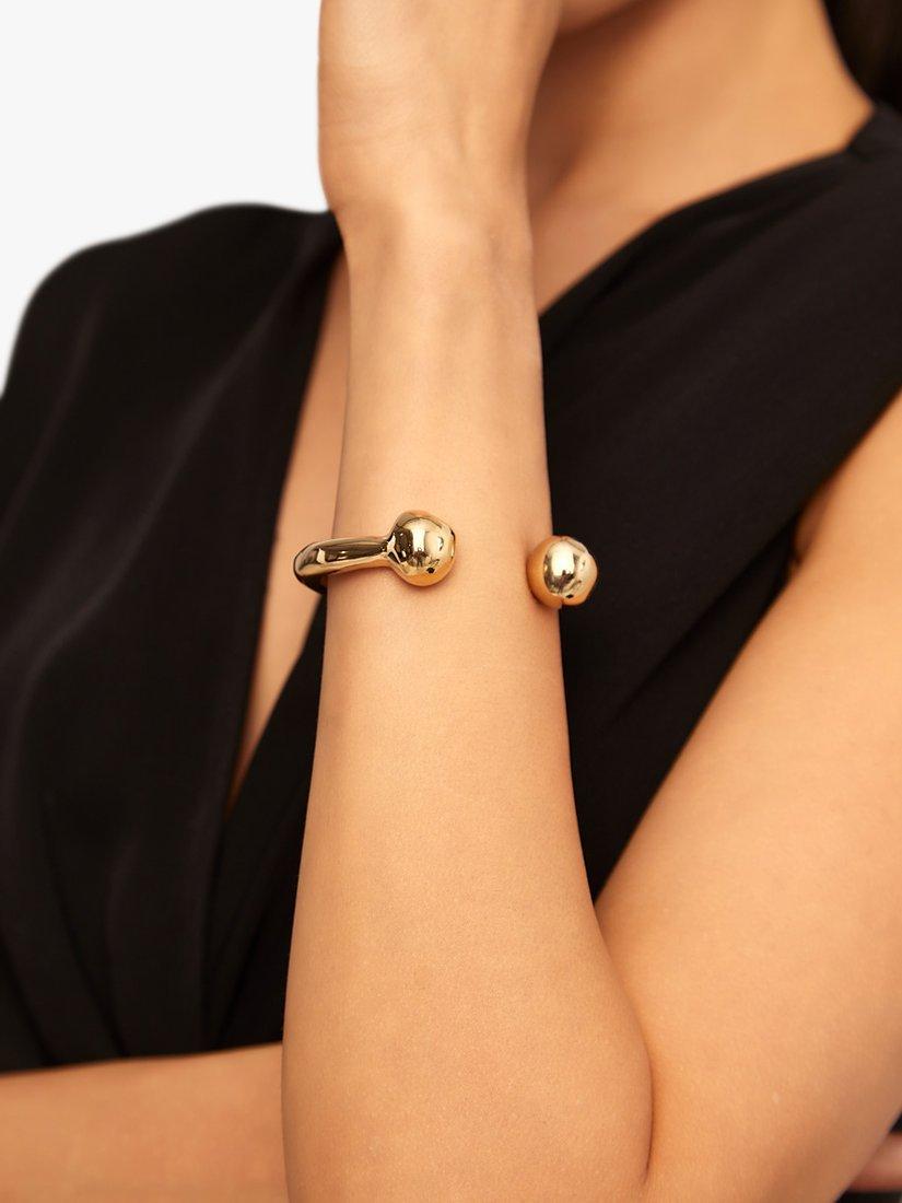 Classic, distinctively UNOde50. This bracelet has a plated metal design featuring balls at each end, one of which is interchangeable. This piece of jewellery is handmade using artisan techniques.