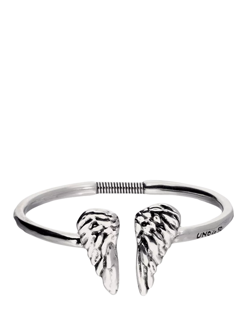 This silver-plated, rigid bracelet features two facing wings, symbolising the power of self-improvement and moving forward with determination. Its open, firm shape represents the inner strength and freedom of those who never give up.