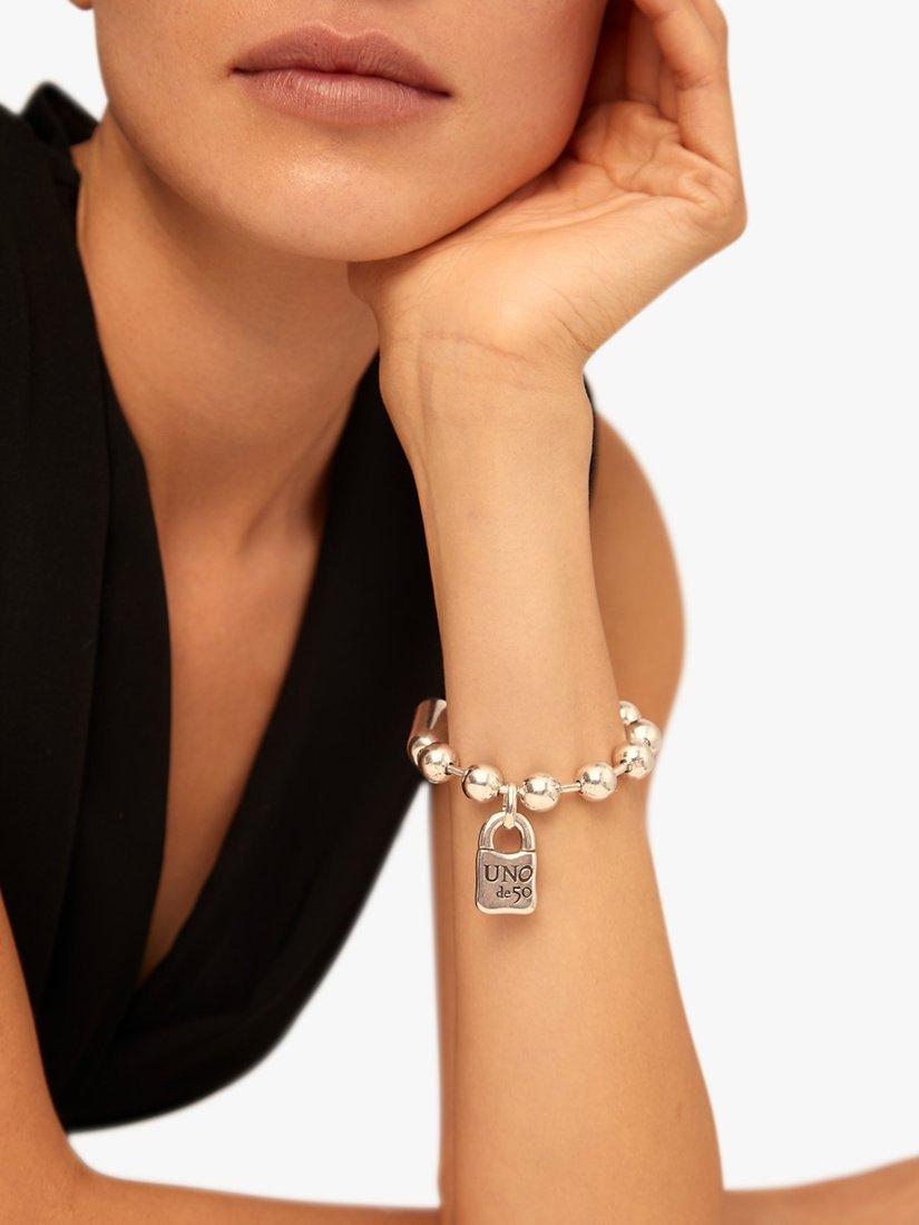 This unisex bracelet is decorated with characteristic rounded pieces and one charm, the padlock created by UNOde50. 100% handmade in Spain.