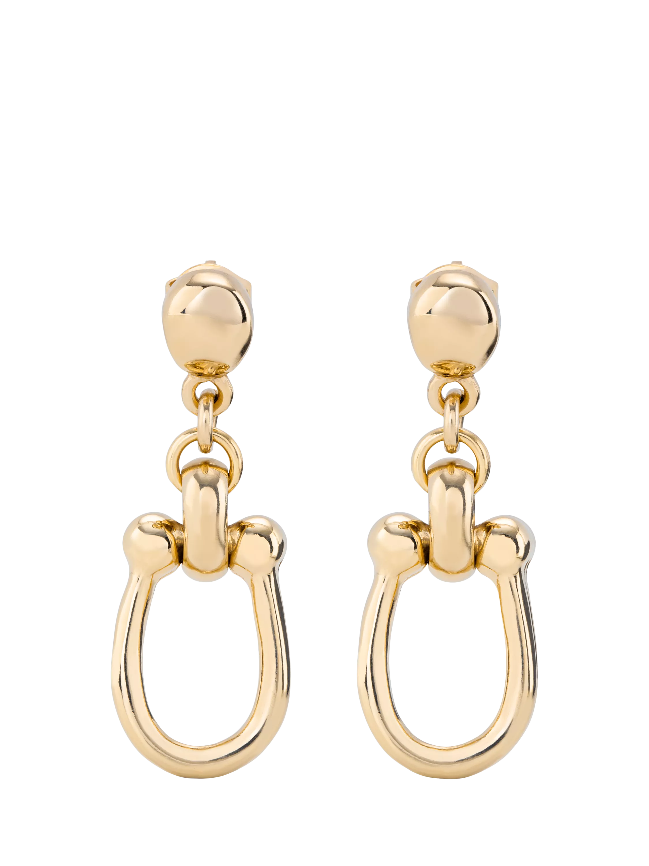 Beautifully polished, these earrings have horseshoe-shaped drops for that extra bit of luck. Secured with post fittings that are for pierced ears only.