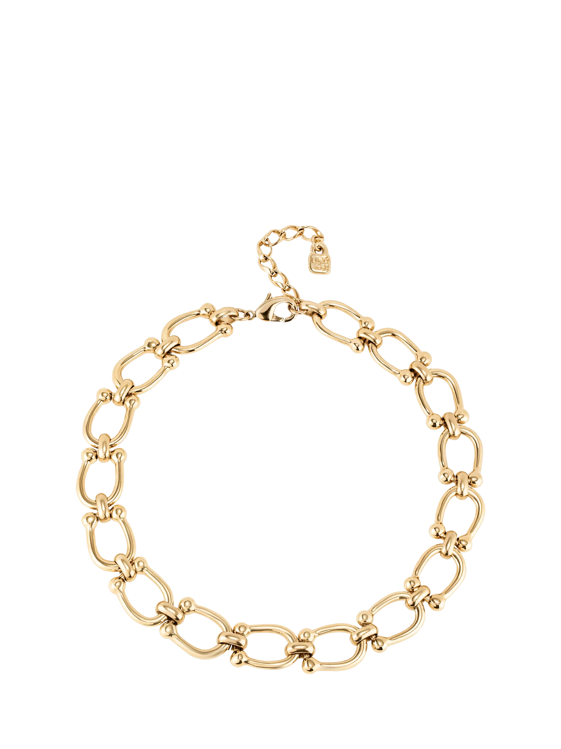 A modern style that can be worn at any time or situation, this collar necklace uses polished horse-shoe shape links for a statement look. The style is adjustable in length for the perfect fit.