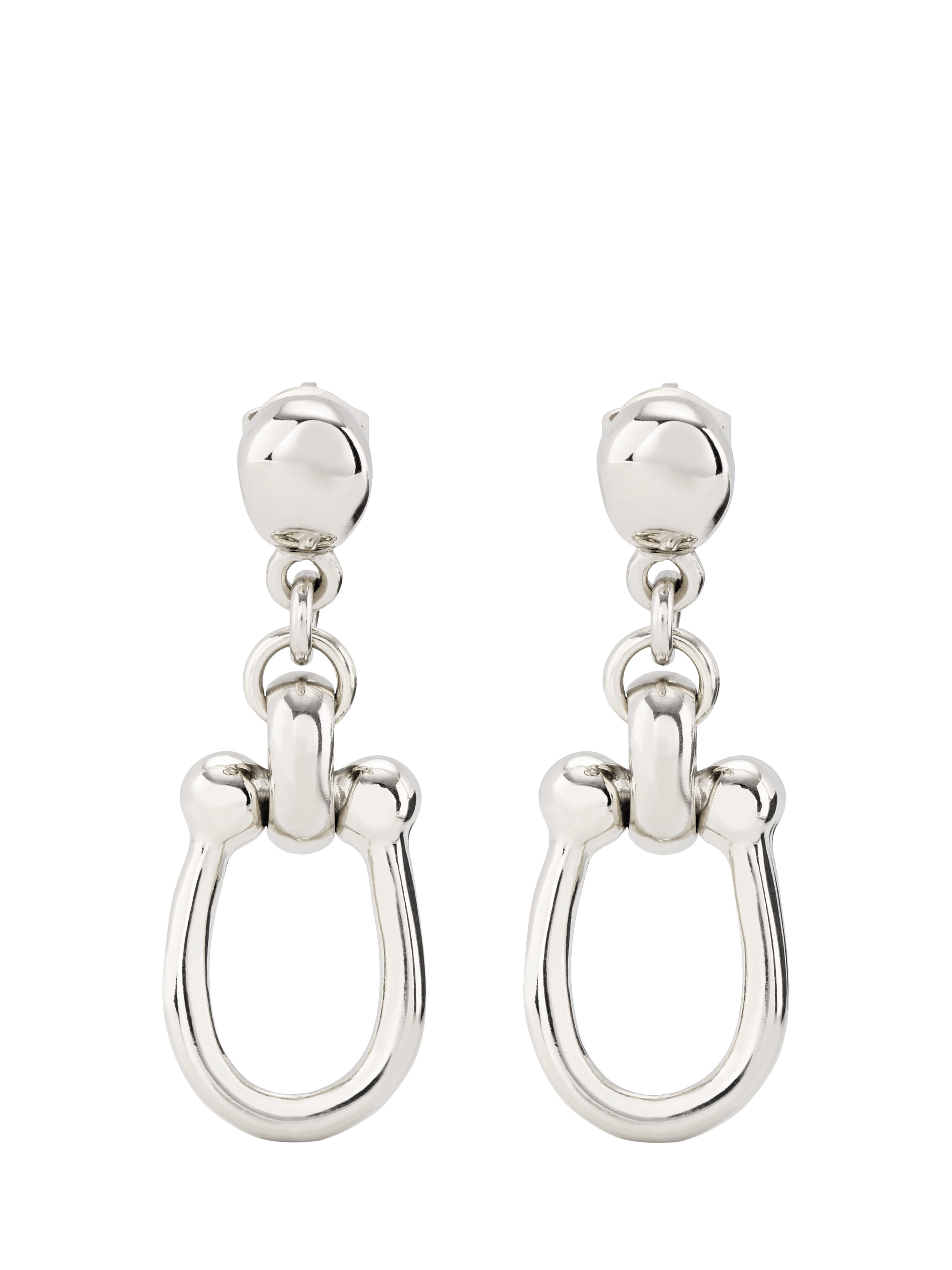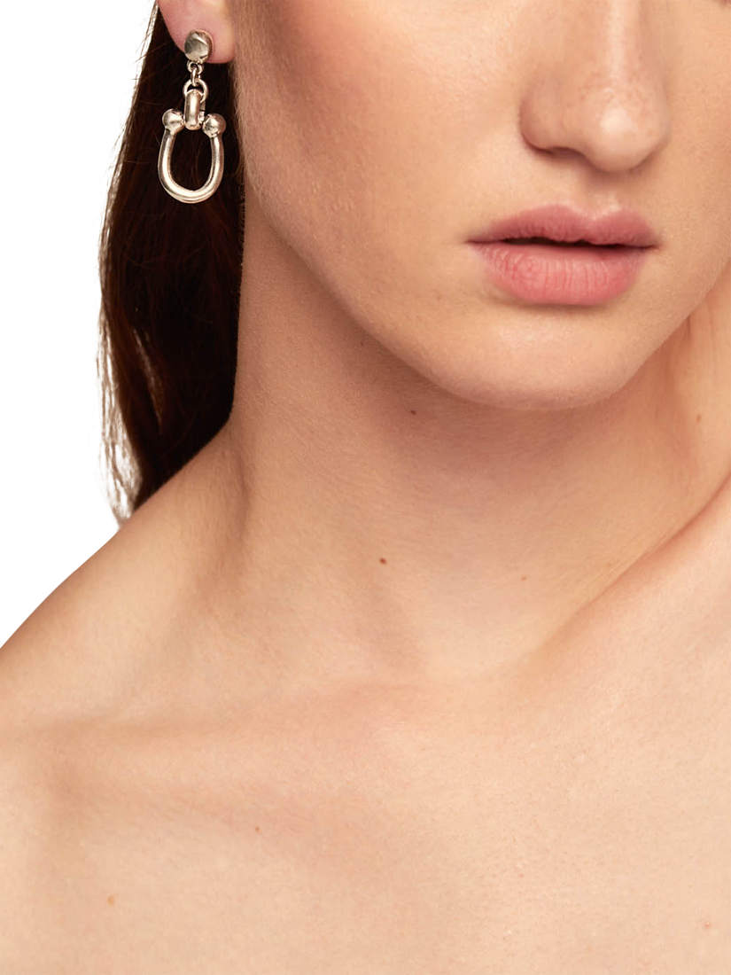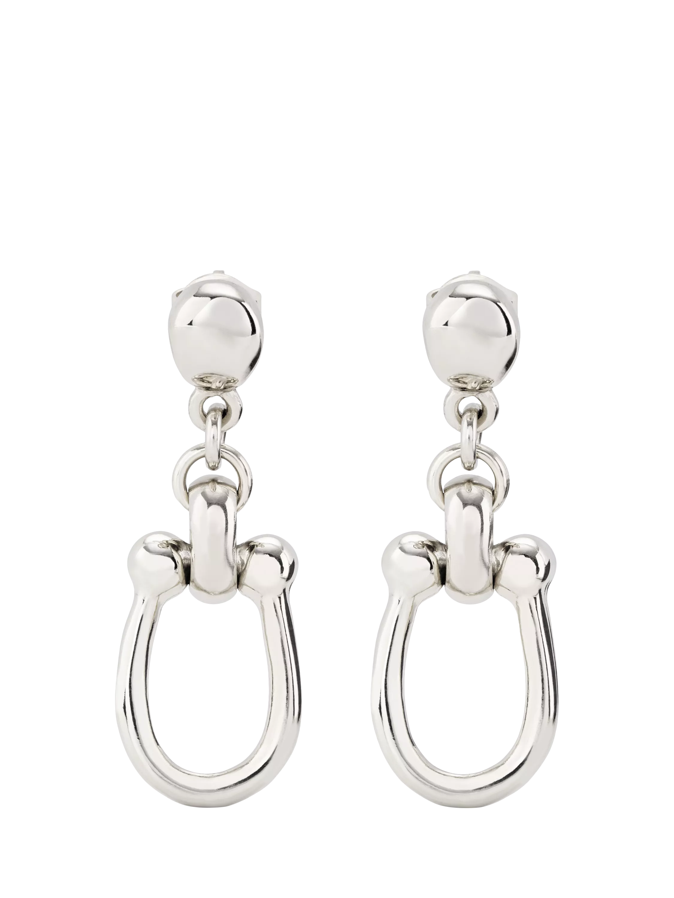 A modern style that can be worn at any time or situation, these drop earrings use polished horse-shoe shape links for a statement look. For pierced ears only.