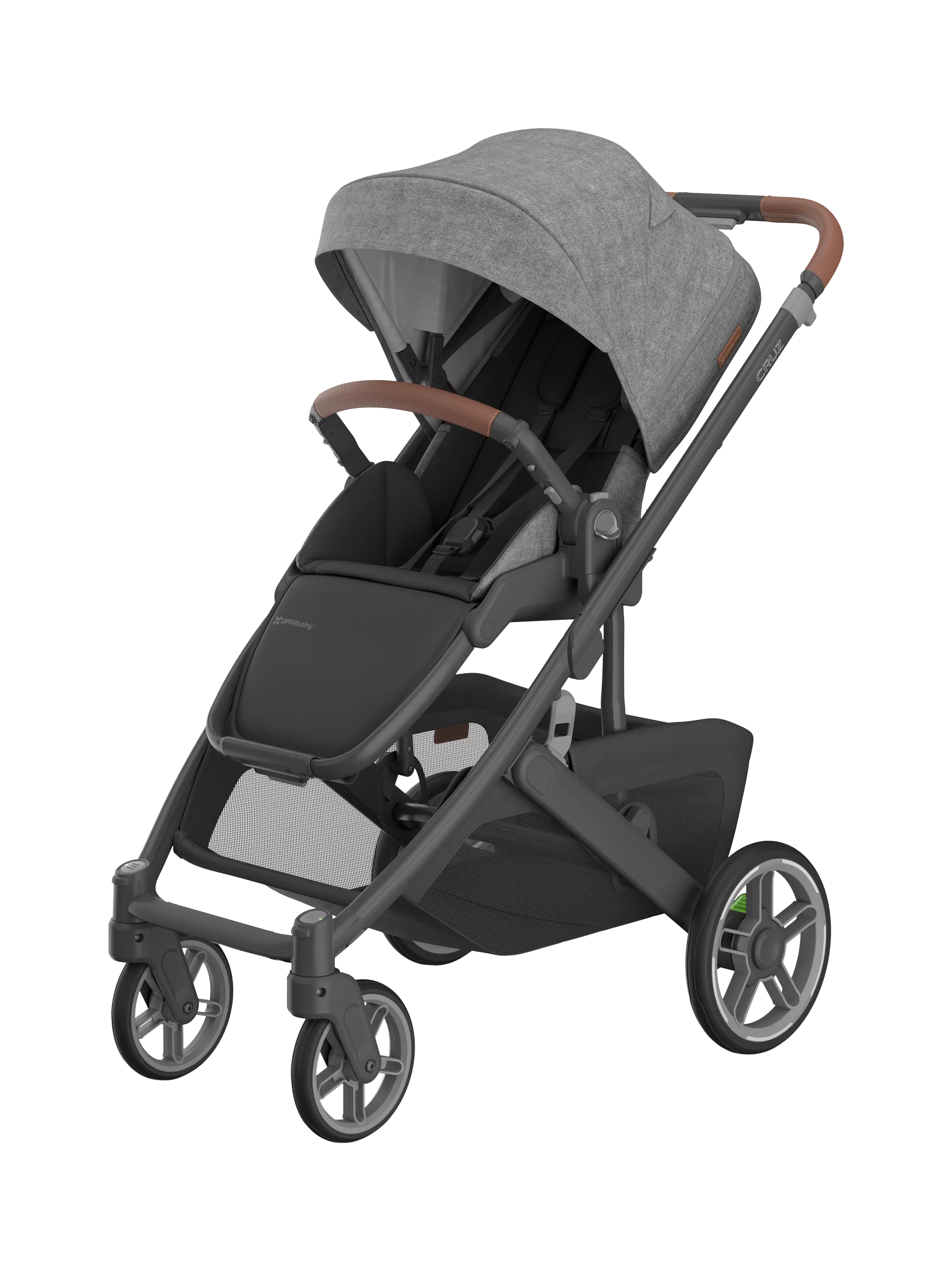 The UPPAbaby CRUZ V3 offers a from-birth solution without the need for an additional carry cot. It has a deep-sided seat with a removable inlay that can be used from birth, and the rear suspension is designed to adapt to the weight of your child, offering comfort for both newborn babies and toddlers. The no-rethread adjustable harness is also designed to adapt to a growing child and has a magnetic buckle for quick attachment. It also features an extendable hood that provides shade and is supplemented with an additional roll-out UPF50 shade, which stows away in the hood when not required. Further features include one-hand backrest and footrest operation and a real leather adjustable height handle bar and bumper bar. It can be fitted with the UPPAbaby carrycot and is travel system compatible with approved infant carriers.