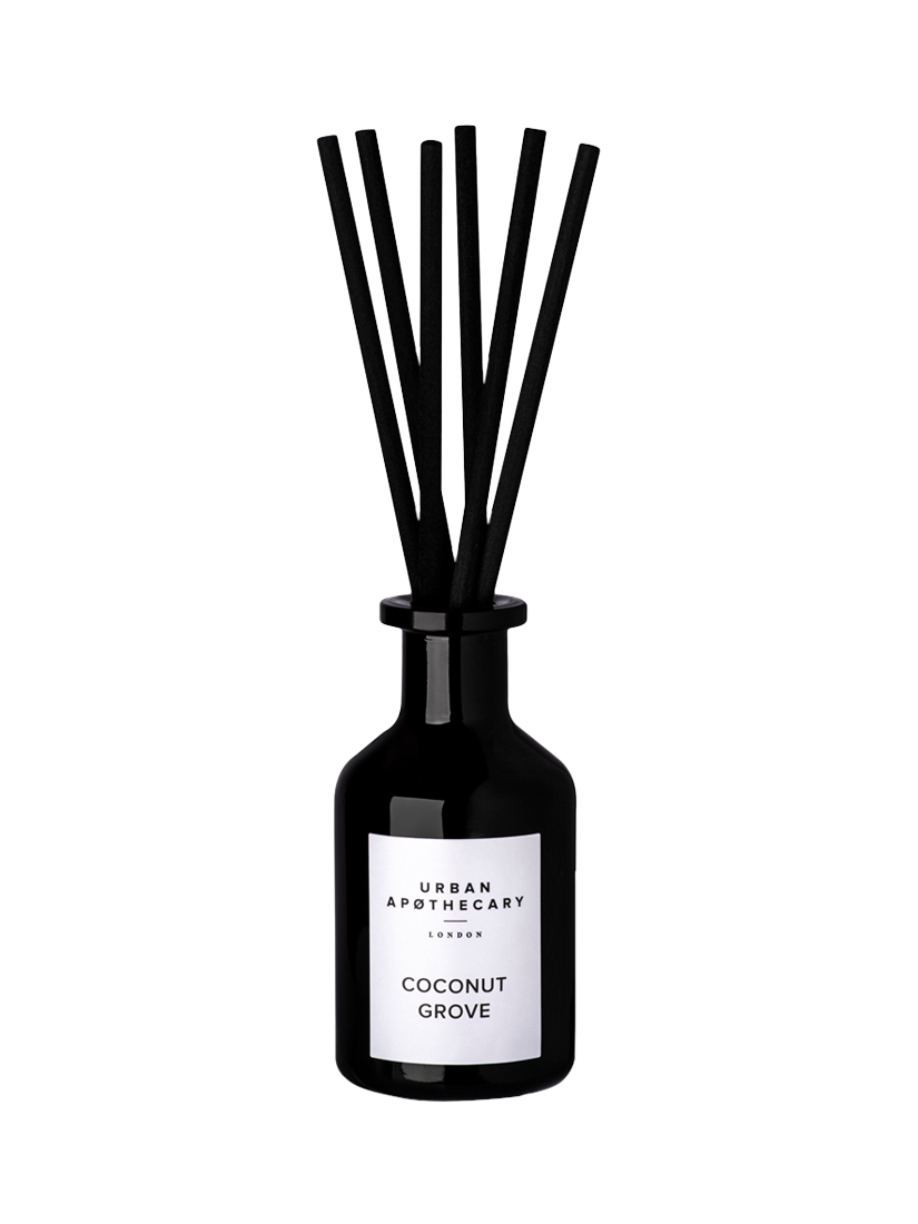 This smart Coconut Grove signature diffuser is hand-poured by artisans in our Leicestershire candle factory. The luxurious glass apothecary bottle with diffuser fragrance is accompanied by six reeds. The rich, captivating aroma of Coconut Grove will infuse rooms with continuous scent for up to 12 weeks.