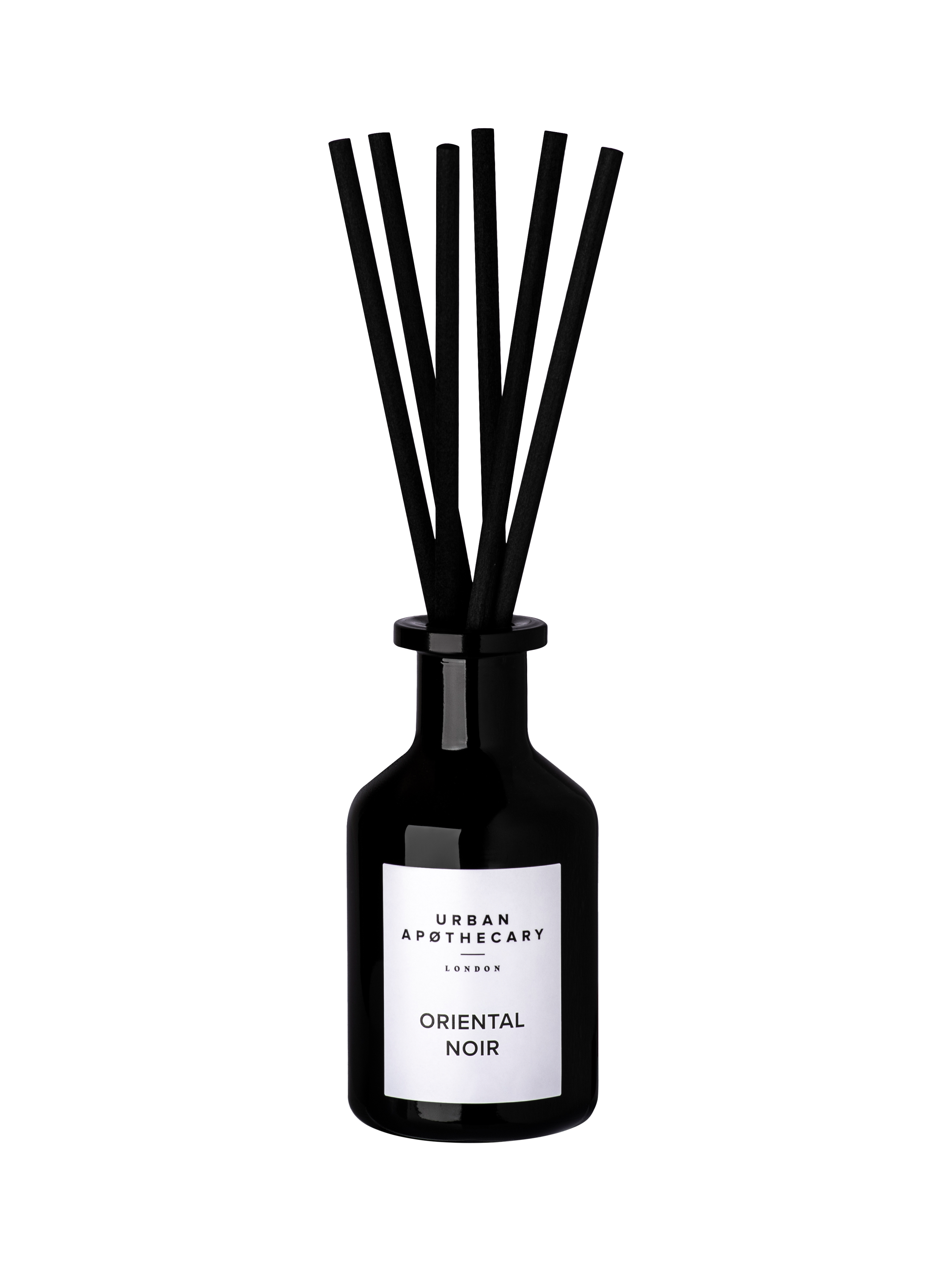 This smart Oriental Noir signature diffuser is hand-poured by artisans in Urban Apothecary's Leicestershire candle factory. The luxurious glass apothecary bottle with diffuser fragrance is accompanied by six reeds. The rich, captivating aroma of Oriental Noir will infuse rooms with continuous scent for up to 12 weeks.