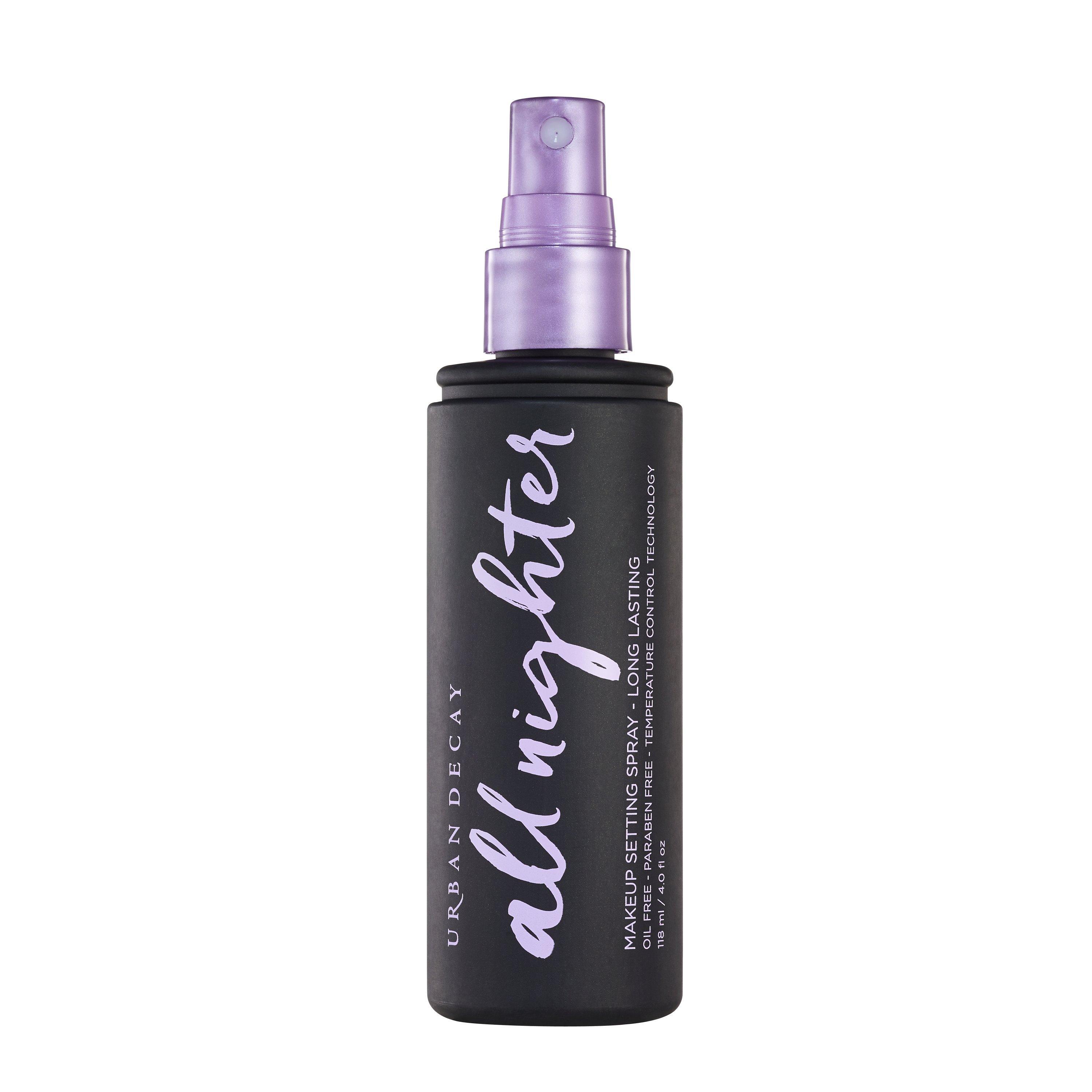 Is makeup meltdown ruining your midnight mojo? Mist on this weightless spray to give your makeup serious staying power. All Nighter Makeup Setting Spray by Urban Decay keeps makeup looking gorgeously just-applied for up to 16 hours—without melting, fading or settling into fine lines.