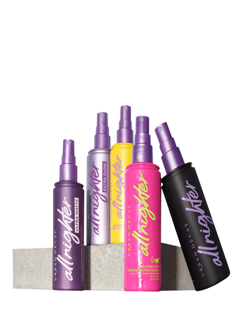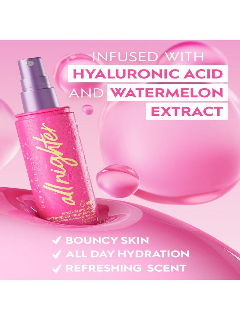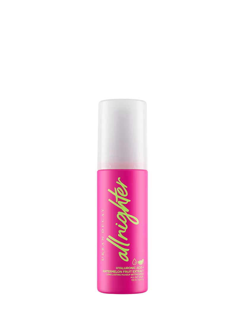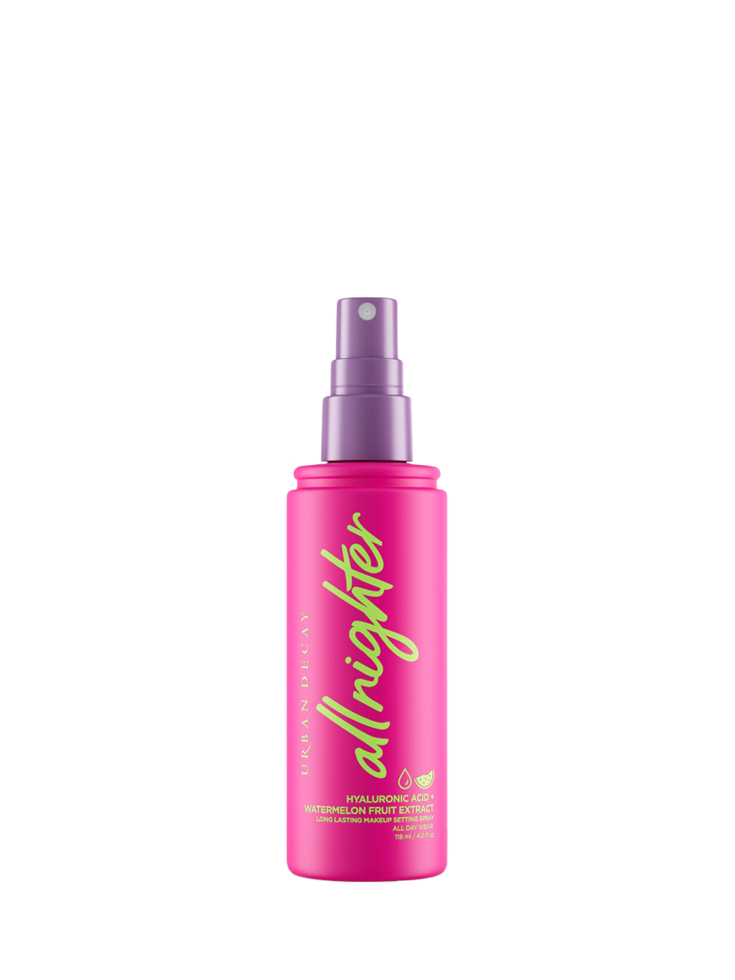 Juicy skin all day? That's the tea. Take control of your look with the Urban Decay All Nighter Watermelon Solution Setting Spray.