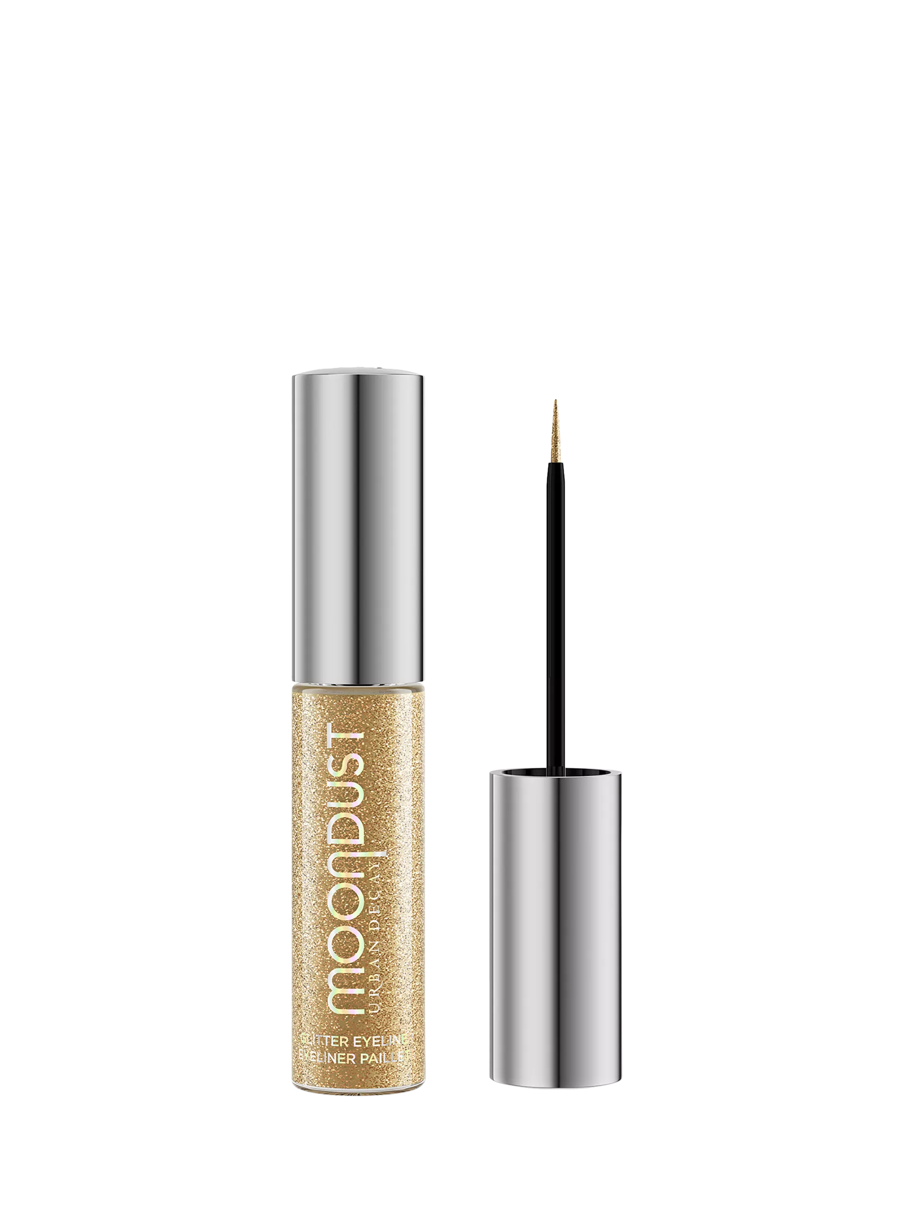 Featuring a thin-tipped liner brush, Moondust Glitter Eyeliner delivers precise application and dazzling definition with every swipe. Wear alone, on top of your favourite eyeliner, or even as a glitter eyeshadow topper, our Moondust liners are a team player!