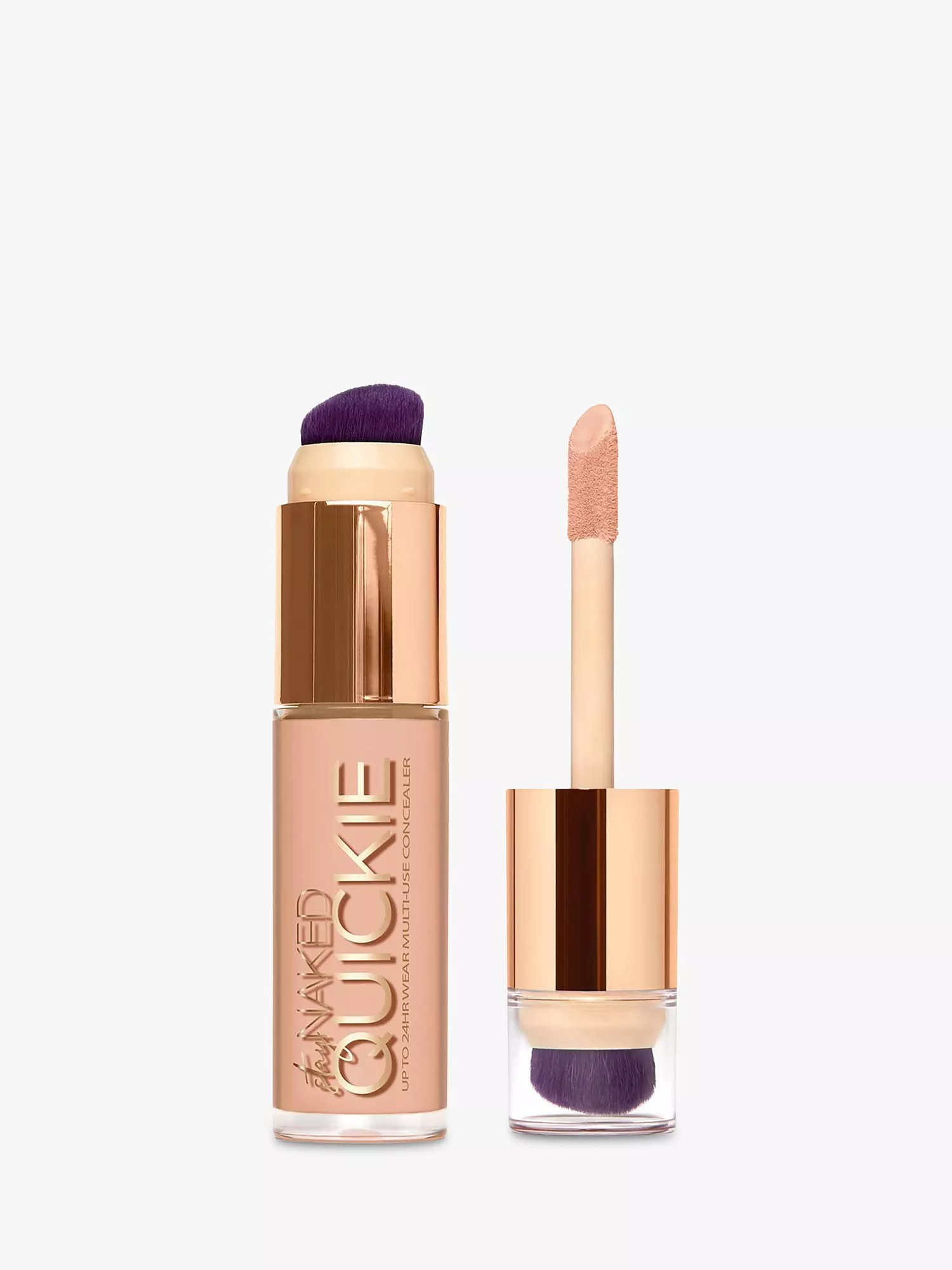 Ready for quick and easy coverage? Acne, dark circles, under eyes, hyperpigmentation — our lightweight Quickie Multi-Use Concealer covers it all for up to 24 hours with a natural finish. Where coverage meets convenience - its fast, finger-free application means buildable coverage can be achieved wherever you are. Tap it on for targeted or all-over usage. Buff it in with the washable vegan* brush. Done.