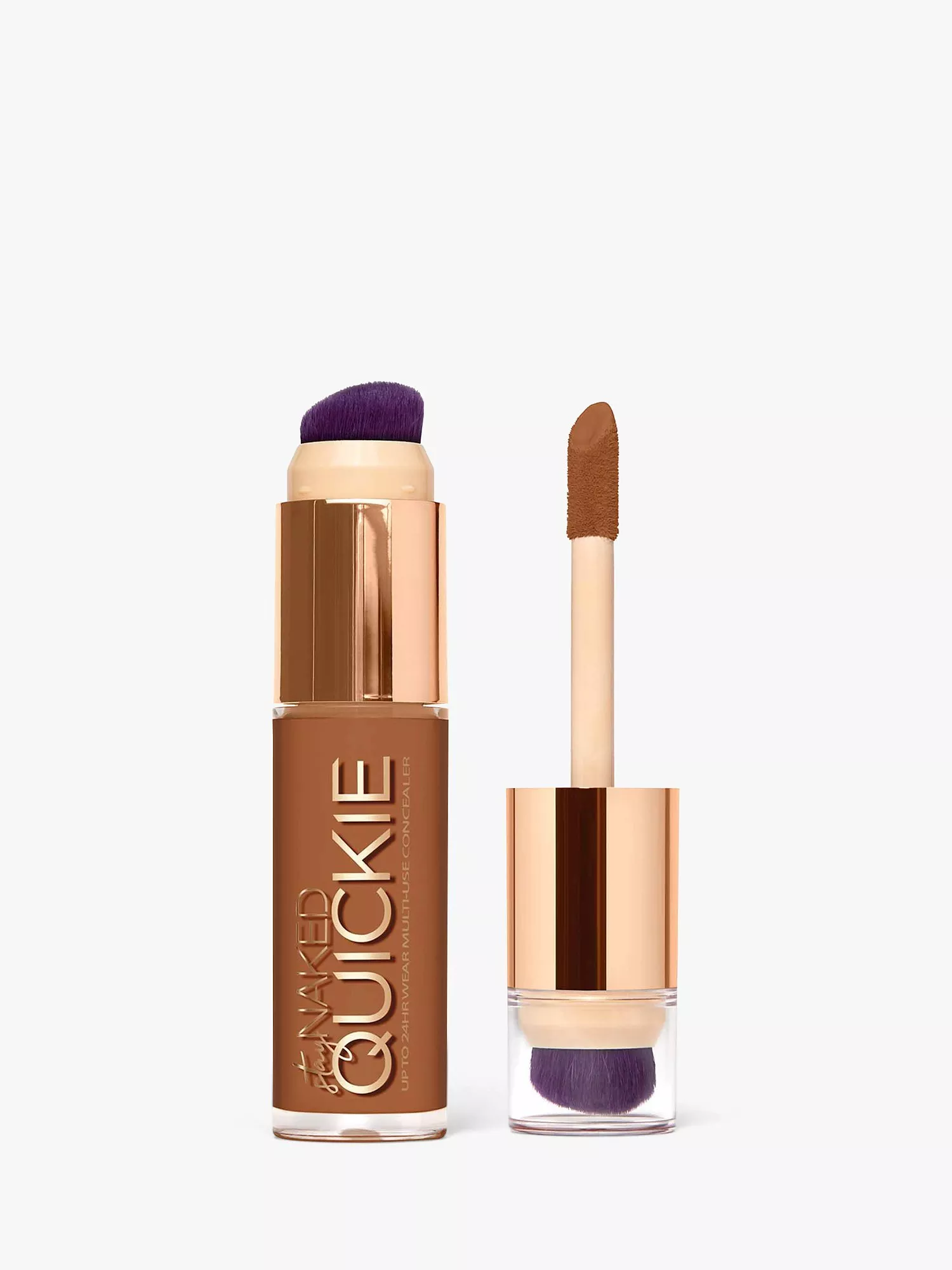 Ready for quick and easy coverage? Acne, dark circles, under eyes, hyperpigmentation — our lightweight Quickie Multi-Use Concealer covers it all for up to 24 hours with a natural finish. Where coverage meets convenience - its fast, finger-free application means buildable coverage can be achieved wherever you are. Tap it on for targeted or all-over usage. Buff it in with the washable vegan* brush. Done.