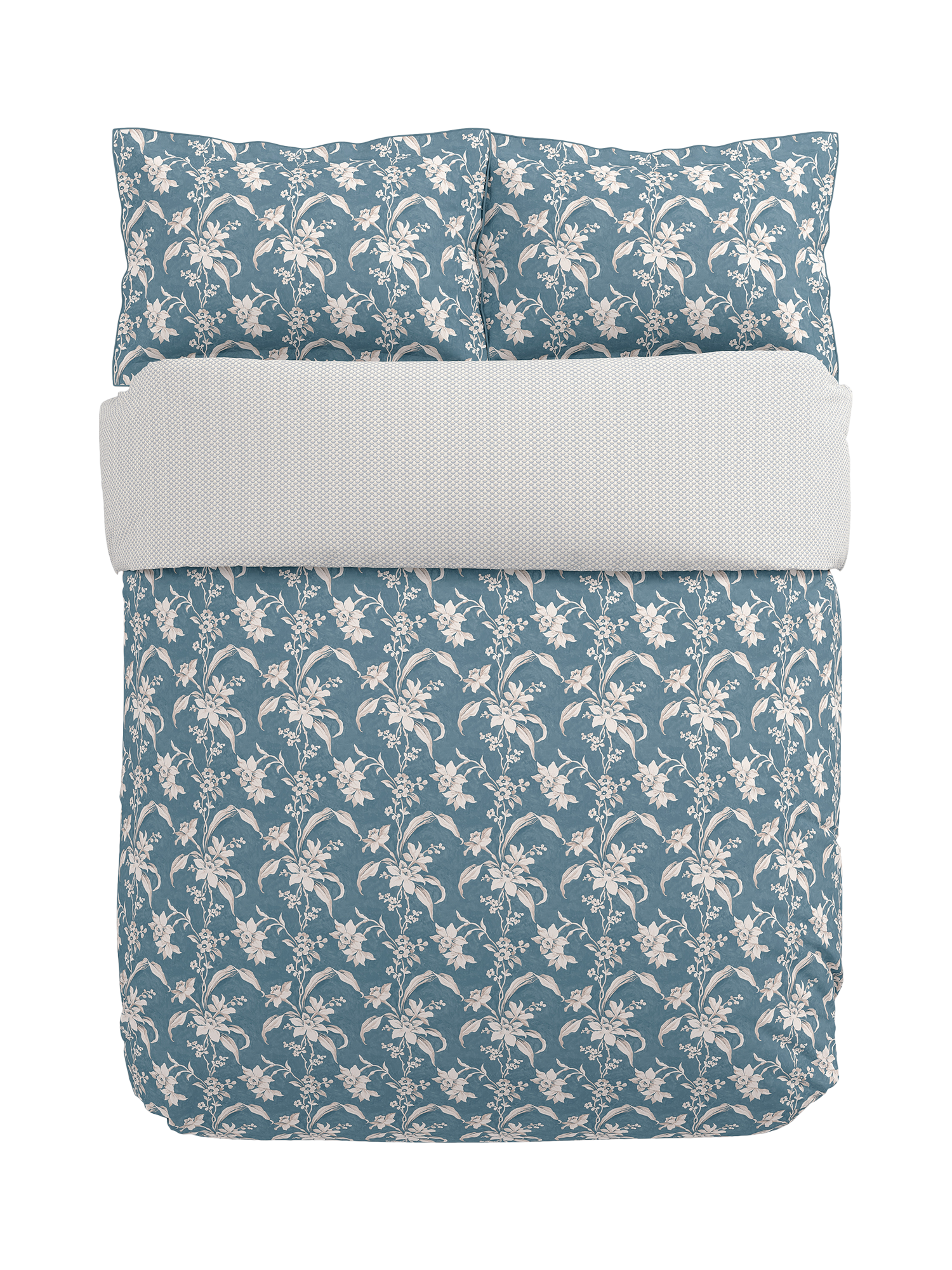 The floral pattern adorning this duvet cover set was inspired by a pencil and watercolour design for a silk textile made in the 1860s by J.D. Cornuaud, which is housed in the V&A's collection of prints, drawings and paintings in South Kensington.