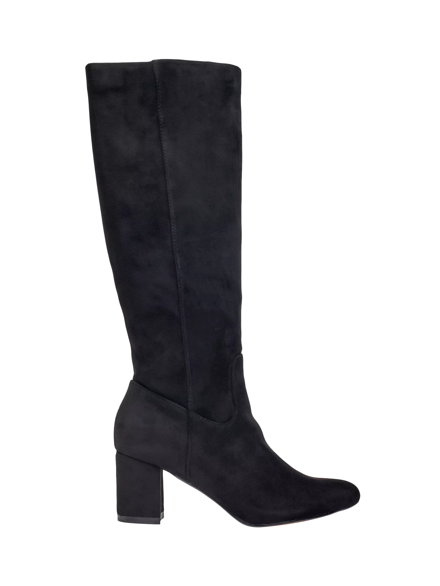 Pulling up to the knee for a look that means business, this pair of boots by V.GAN is made from a soft microfibre with an almond toe and a comfortable wearable block heel.