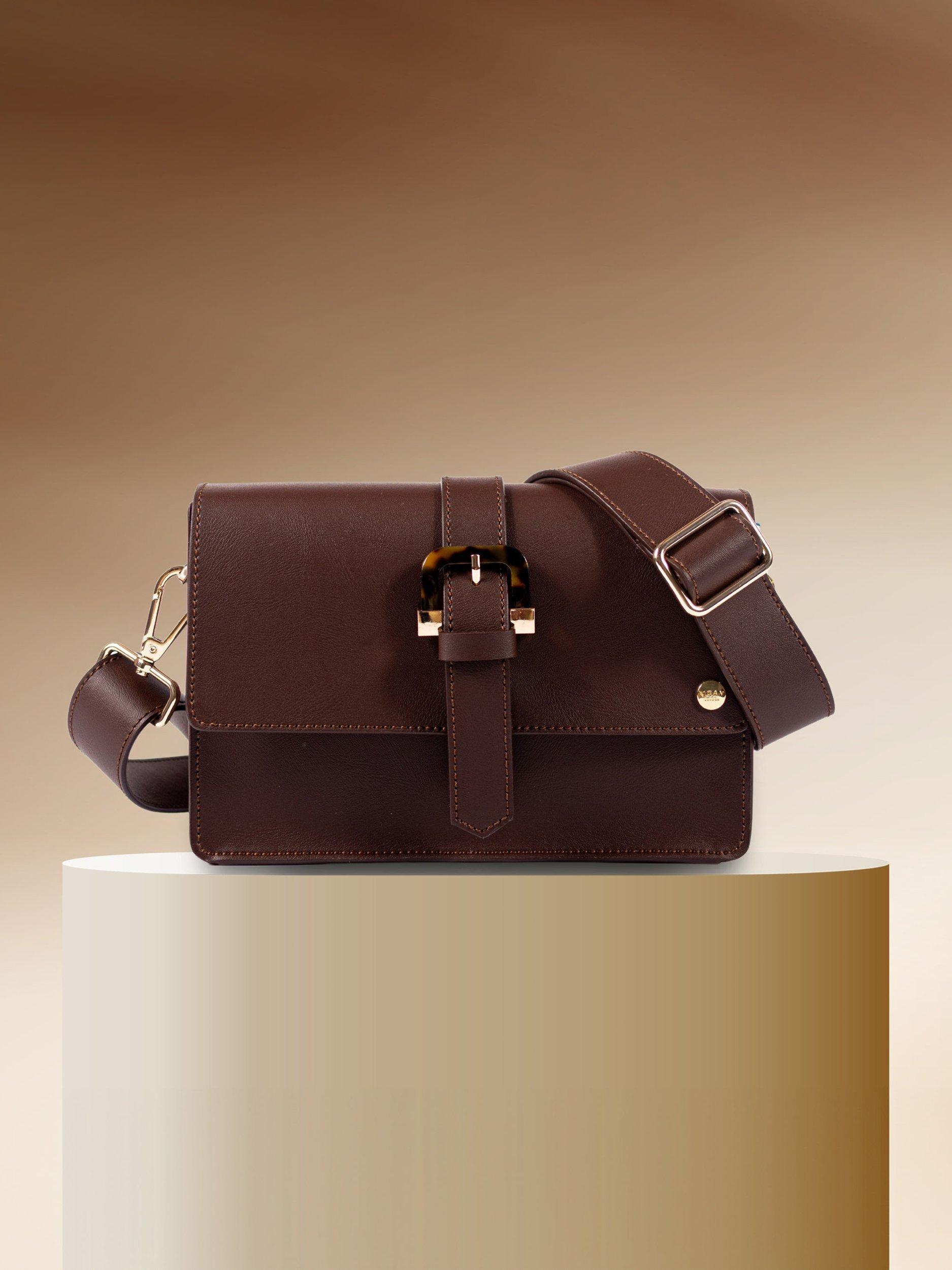This stylish crossbody bag has a faux-tortoiseshell buckle detail, adjustable strap, an inside envelope pocket and a woven branded label along with an exquisite, branded stud. Comes with a dust bag.