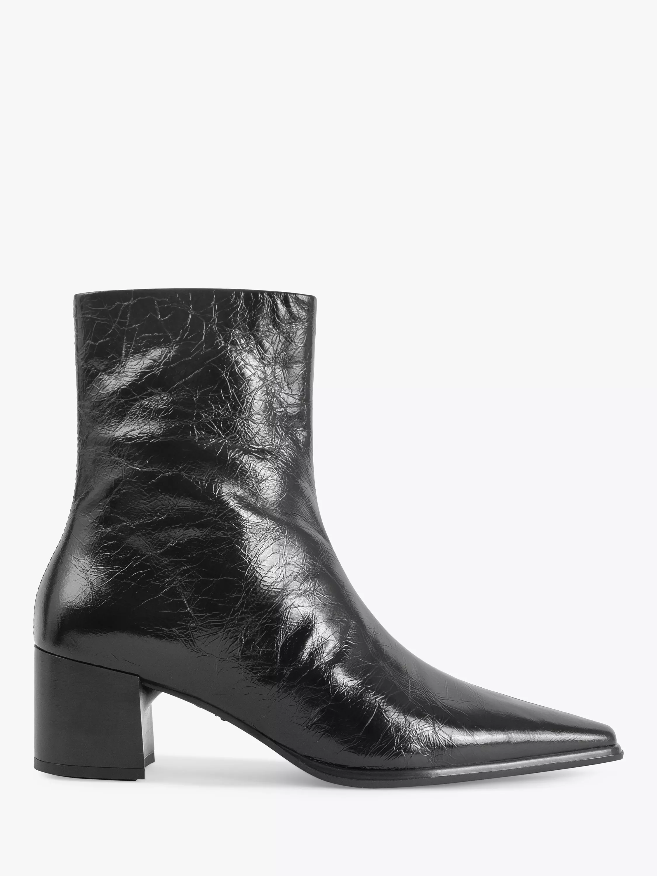 Sitting at the ankle for a classic style, this pair of boots from Vagabond Shoemakers is made from patent leather. Set on a block heel, they come with a pointed-toe shape and zip-side fastening.