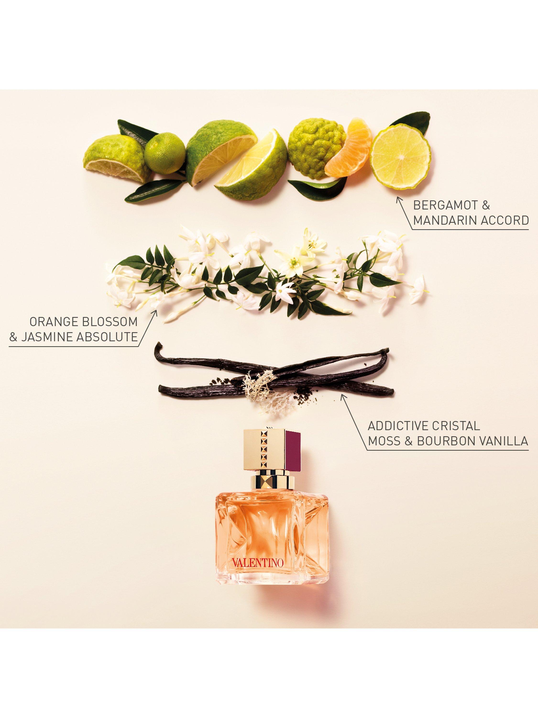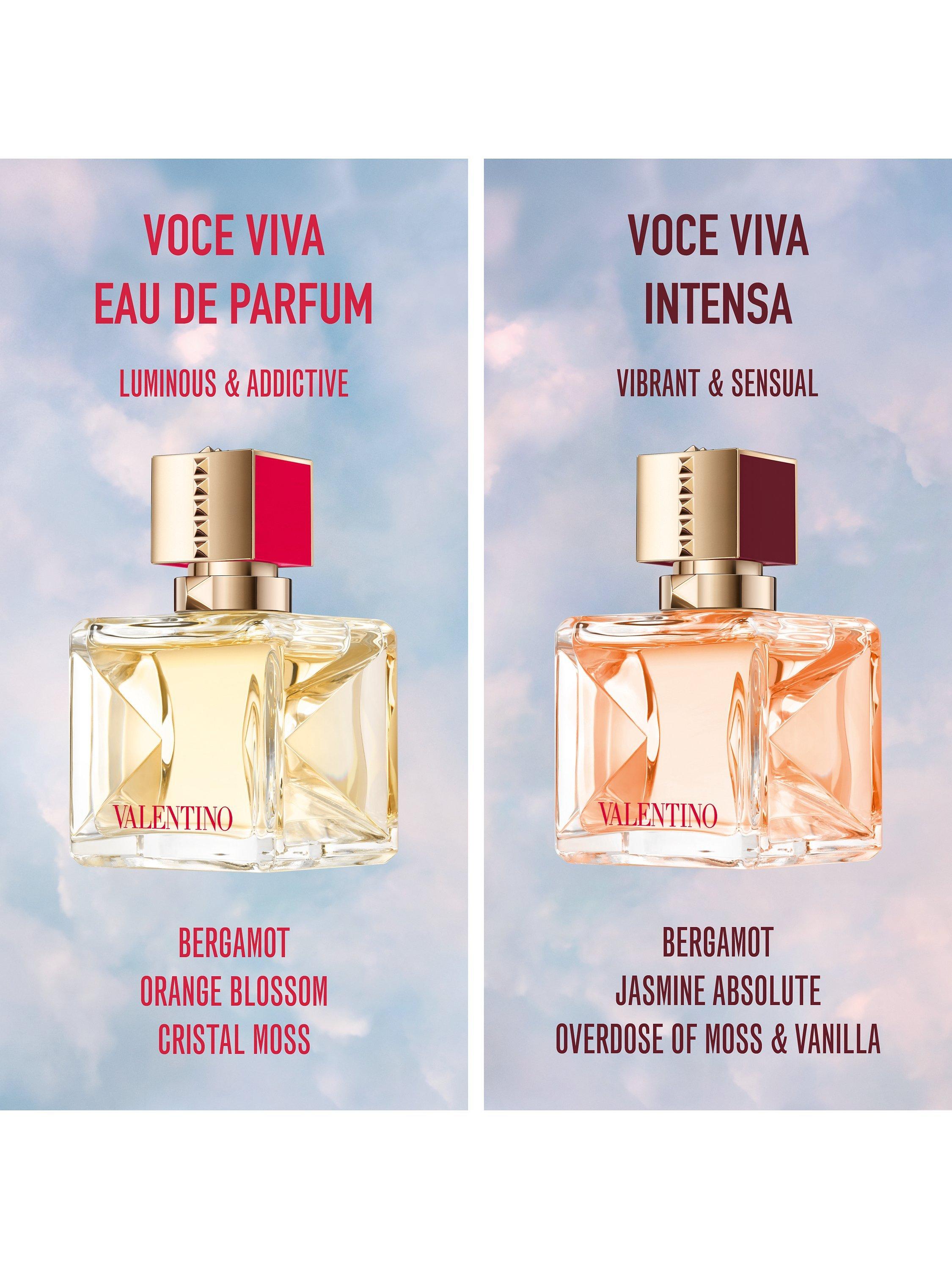 Voce Viva Intensa Eau de Parfum is a bold, intense and luxurious scent for women. An ode to Valentino’s multi-faceted femininity. A harmony of a radiant floral bouquet amplified by Jasmin Absolute twisted with an addictive Crystal Moss accord and intensified with a double dose of Bourbon Vanilla celebrating the sound of your voice in the scent of your fragrance.