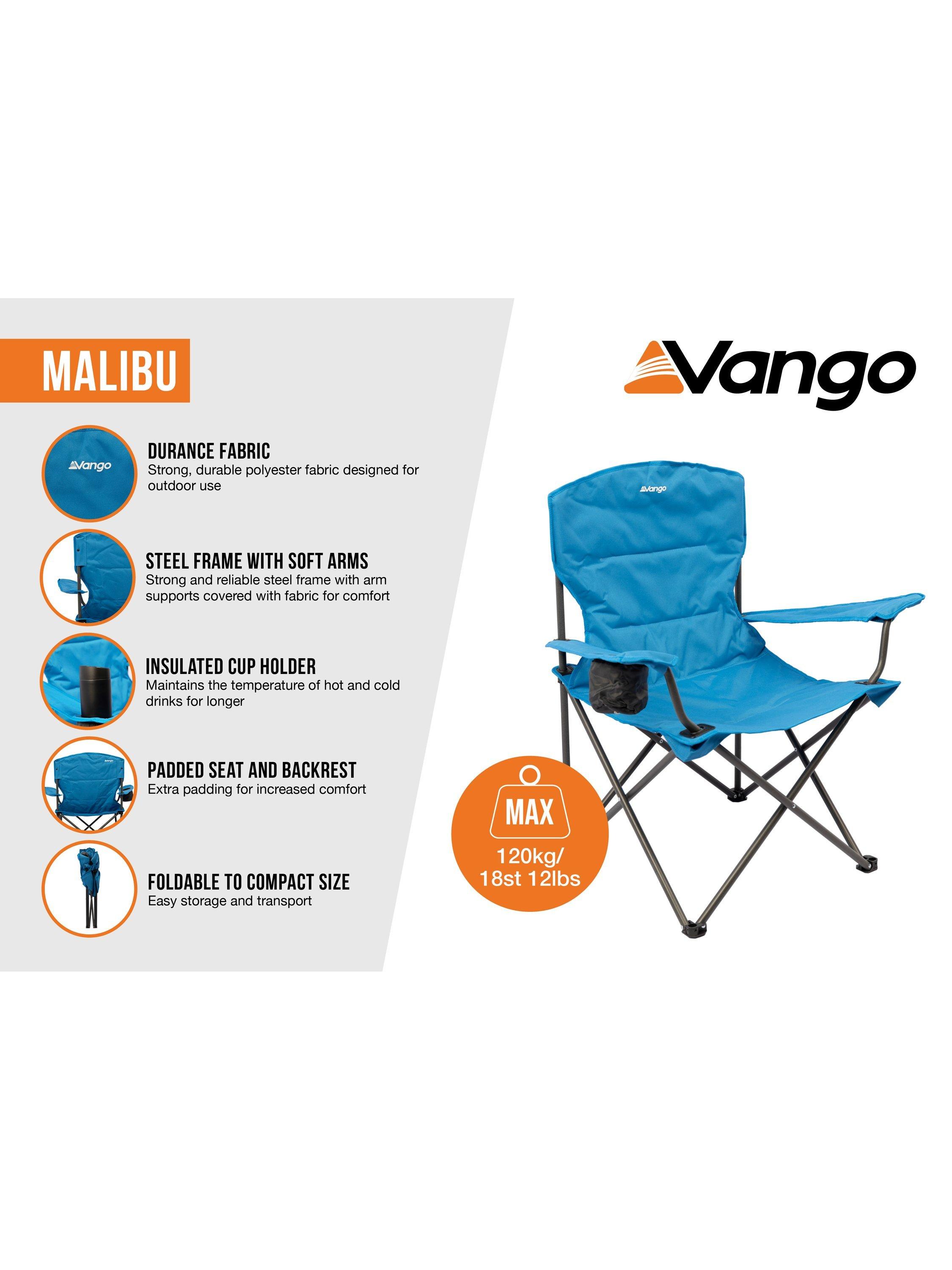 The perfect chair for relaxing on the campsite with a cold refreshment or hot chocolate thanks to the insulated cup holder which will maintain the temperature of your drink for longer. Durance fabric combined with a comfy, padded surface make this chair an all-rounder and suitable for all outdoor use - camping, garden, BBQ, beach or festival.