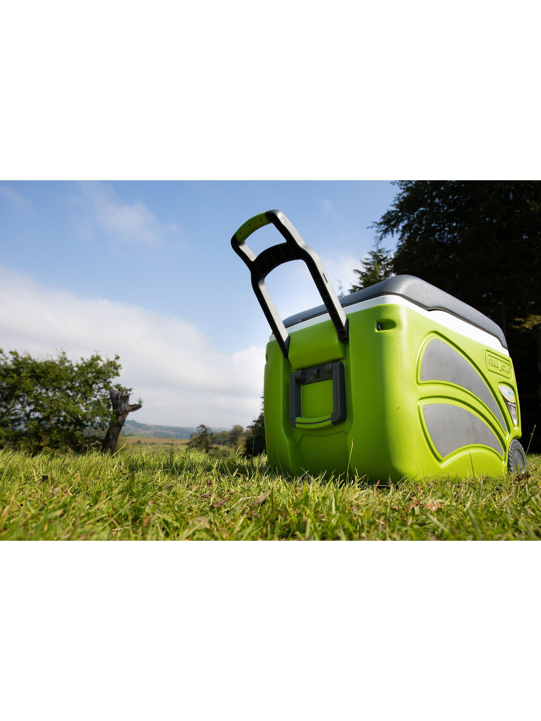The Vango Pinnacle Wheelie 45L cool box is ideal for picnics, parties or camping trips. Able to hold 66 cans, you are sure to fit everything in. Its insulated body with polyurethane foam helps keep food and beverages cold for up to 100 hours. It features 2 small handles for carrying and a longer one with wheels on the opposite side for easy transportation.