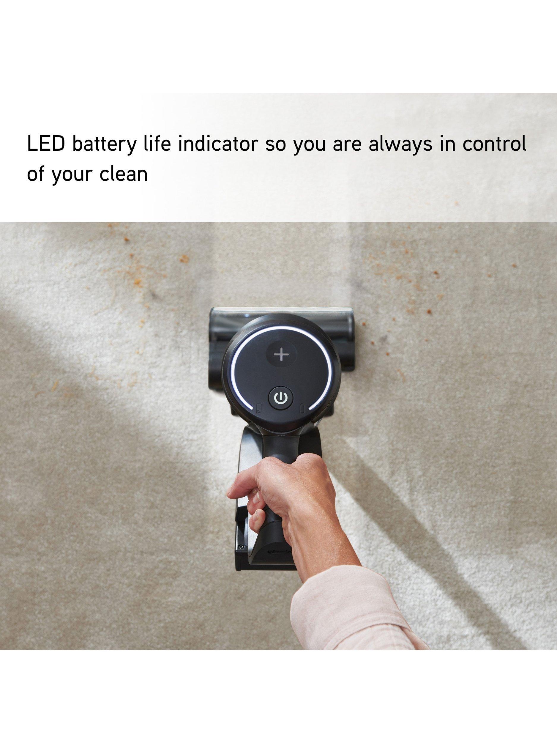 The LED battery life indicator easily shows you the remaining power, so you are always in control of your clean.