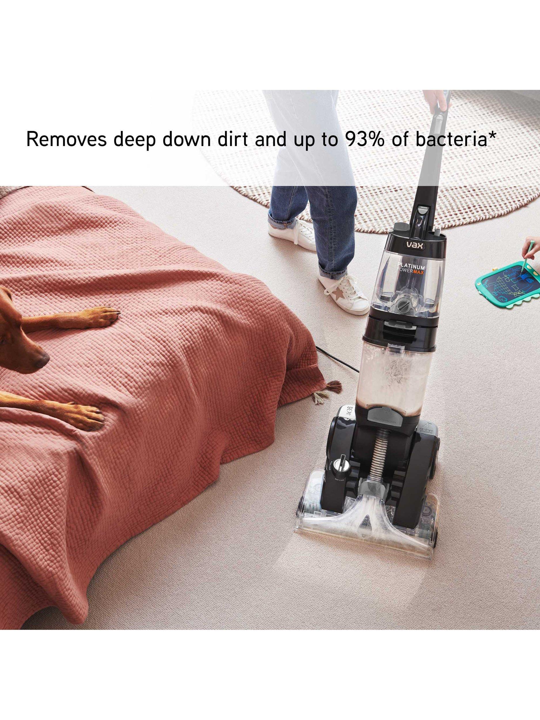 Powerful and ergonomic, the ECB1SPV1 Platinum Power Max Carpet Cleaner from Vax is able to remove up to 93% of bacteria, along with other fungi and allergens, leaving your carpets fresh and dry within an hour.