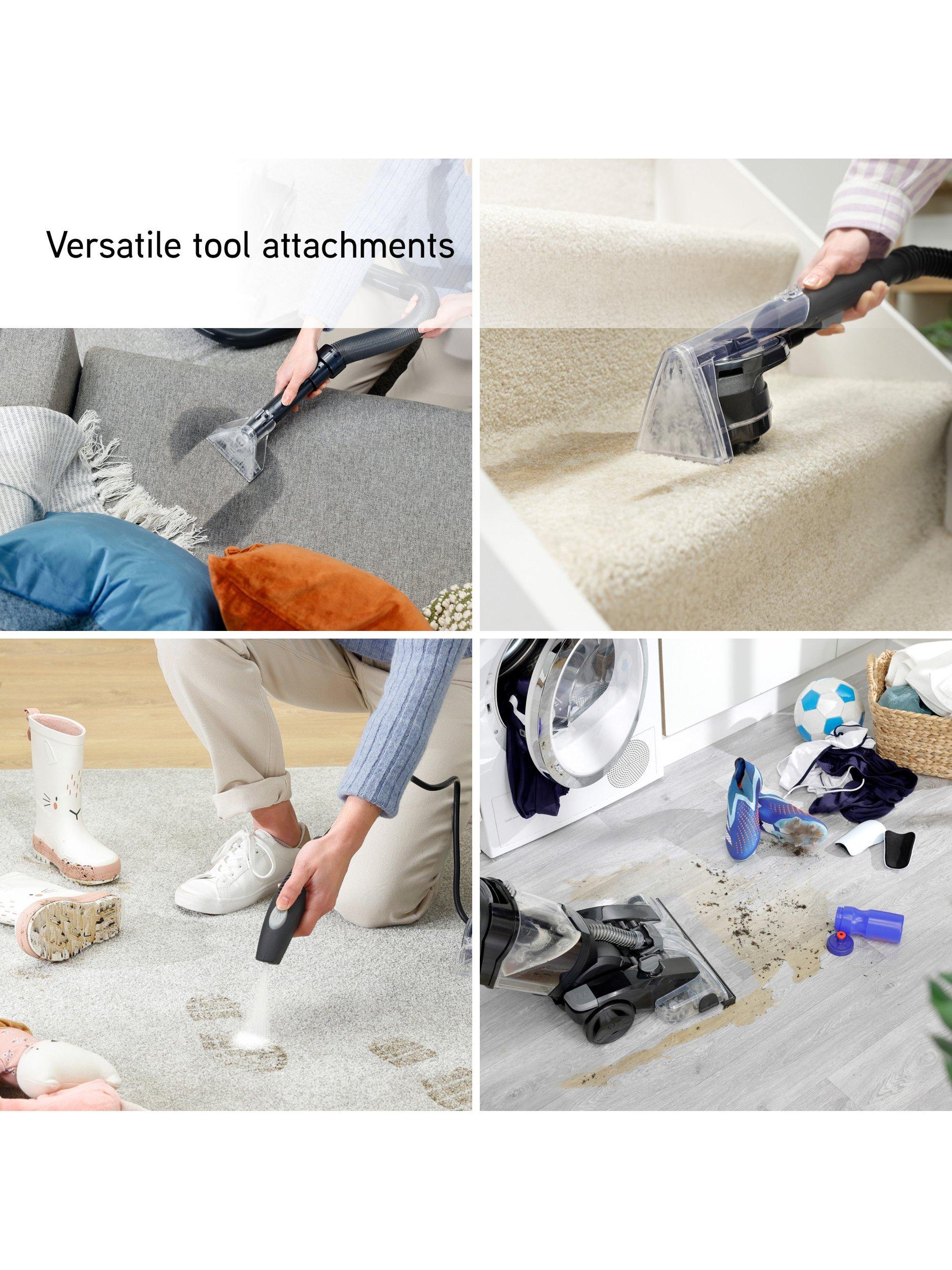 Thanks to a hand wash tool and stretch hose, you can easily clean above the floor, stairs, car seats or any stubborn spot stains and spills.