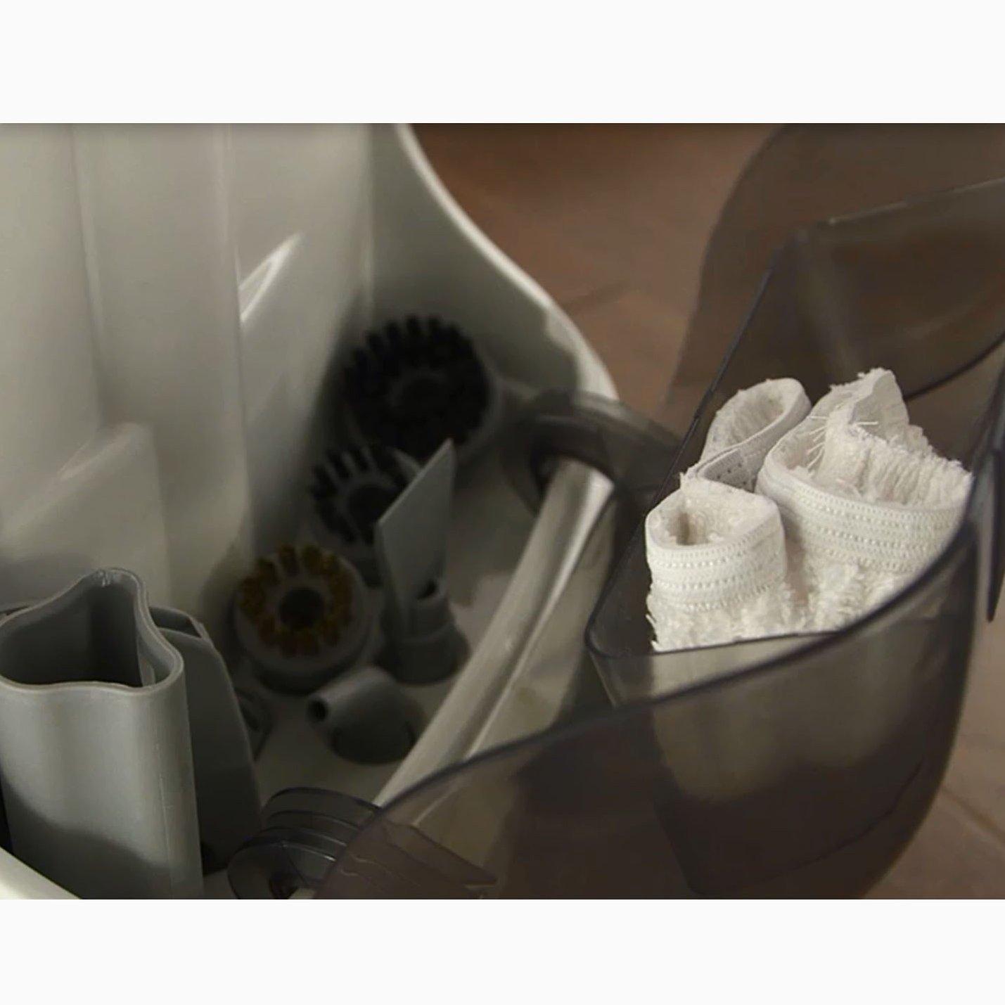 A 16 piece accessory kit is included, so there’s a tool to help make every cleaning task effortless. The kit includes a hose and handle, scraper tool, grout brush, detailer tool, concentration nozzle, upholstery/window tool, small plastic brush, large plastic brush, floor head, 3px extension tube, funnel, measuring jug, upholstery tool cloth x2 and floor head cloth.