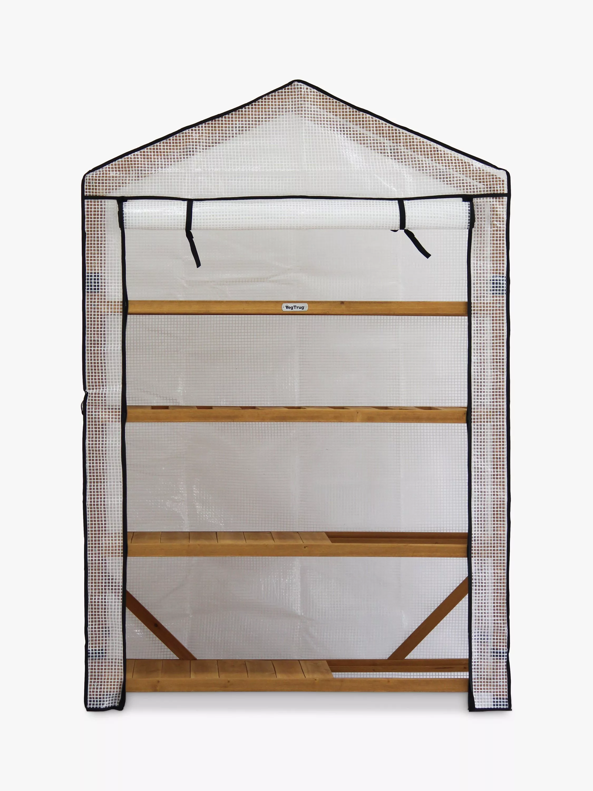 - Side flaps for ventilation — Flaps in the sides of the PE greenhouse cover allow for extra ventilation or for additional accessories such as VegTrug's wooden side table to clip onto from either side to give you more working space