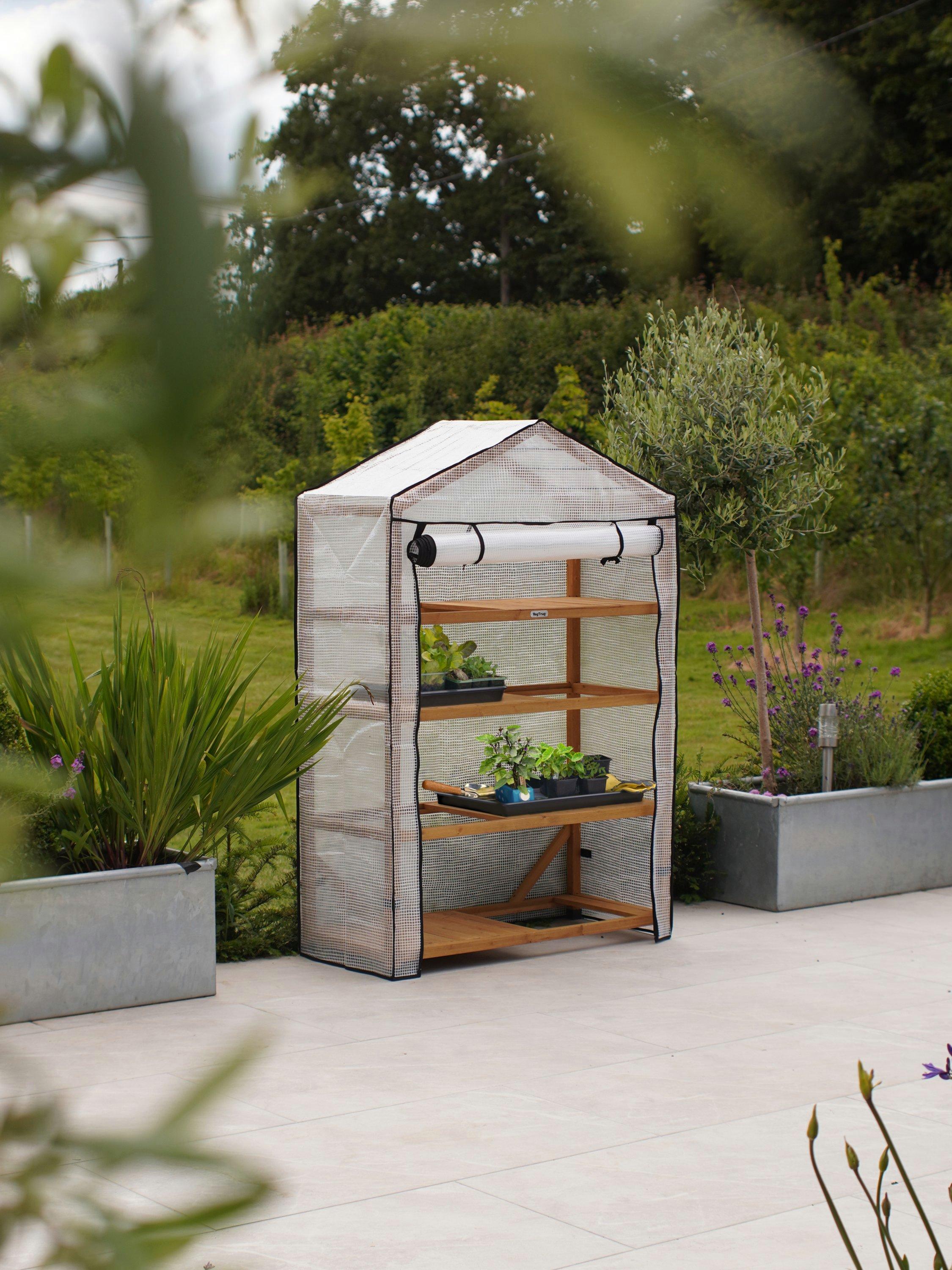 Give your plants the best chance. This nursery greenhouse from VegTrug has four tiers of shelving space for nursing seedlings, keeping too-early plants safe before going outside, establishing plants or creating a plant hospital.
