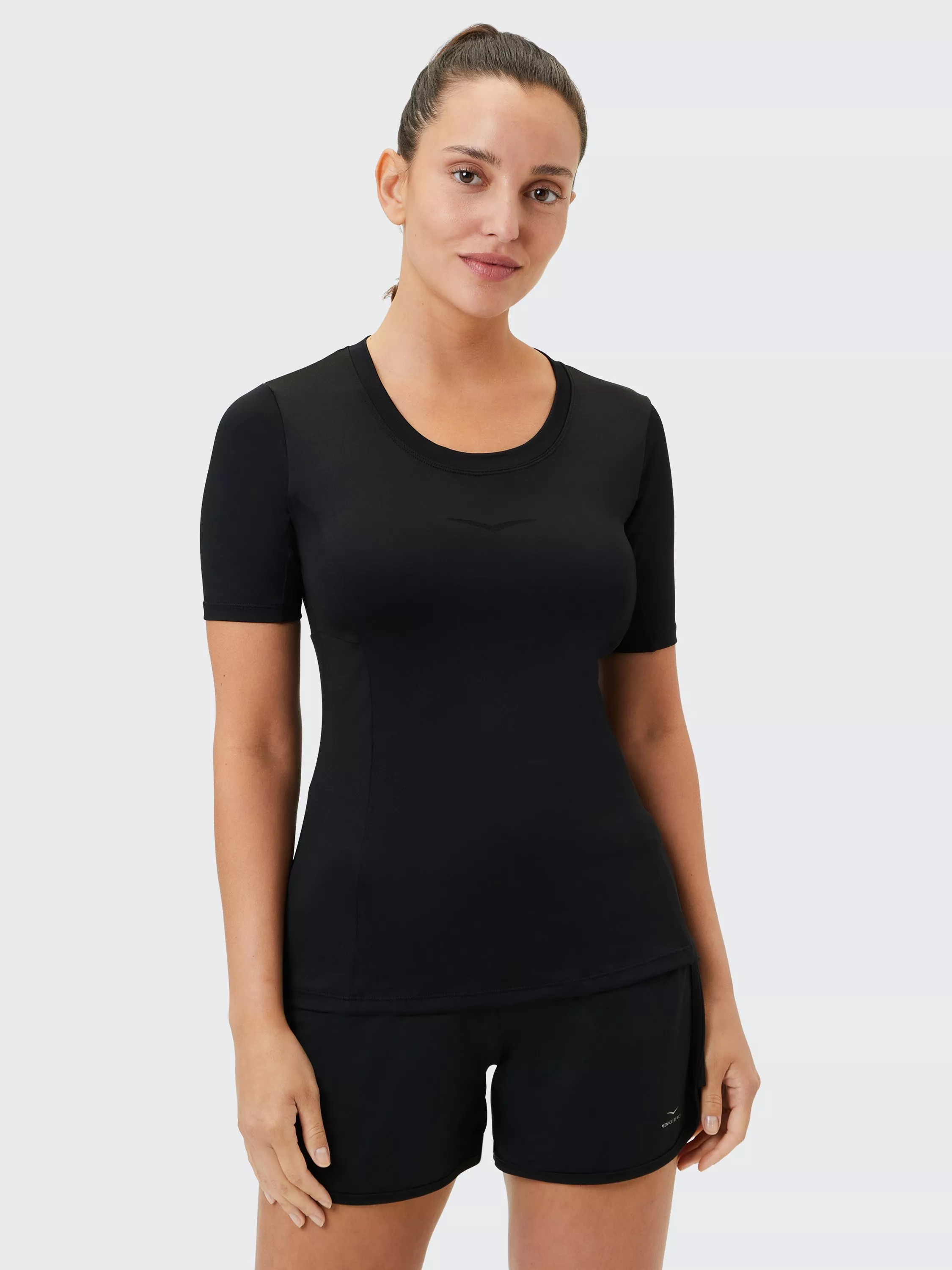 Whether cosy on the couch, during a sweaty fitness workout or at brunch with your best friend: as multifunctional activewear, this sports shirt for women impresses all along the line.