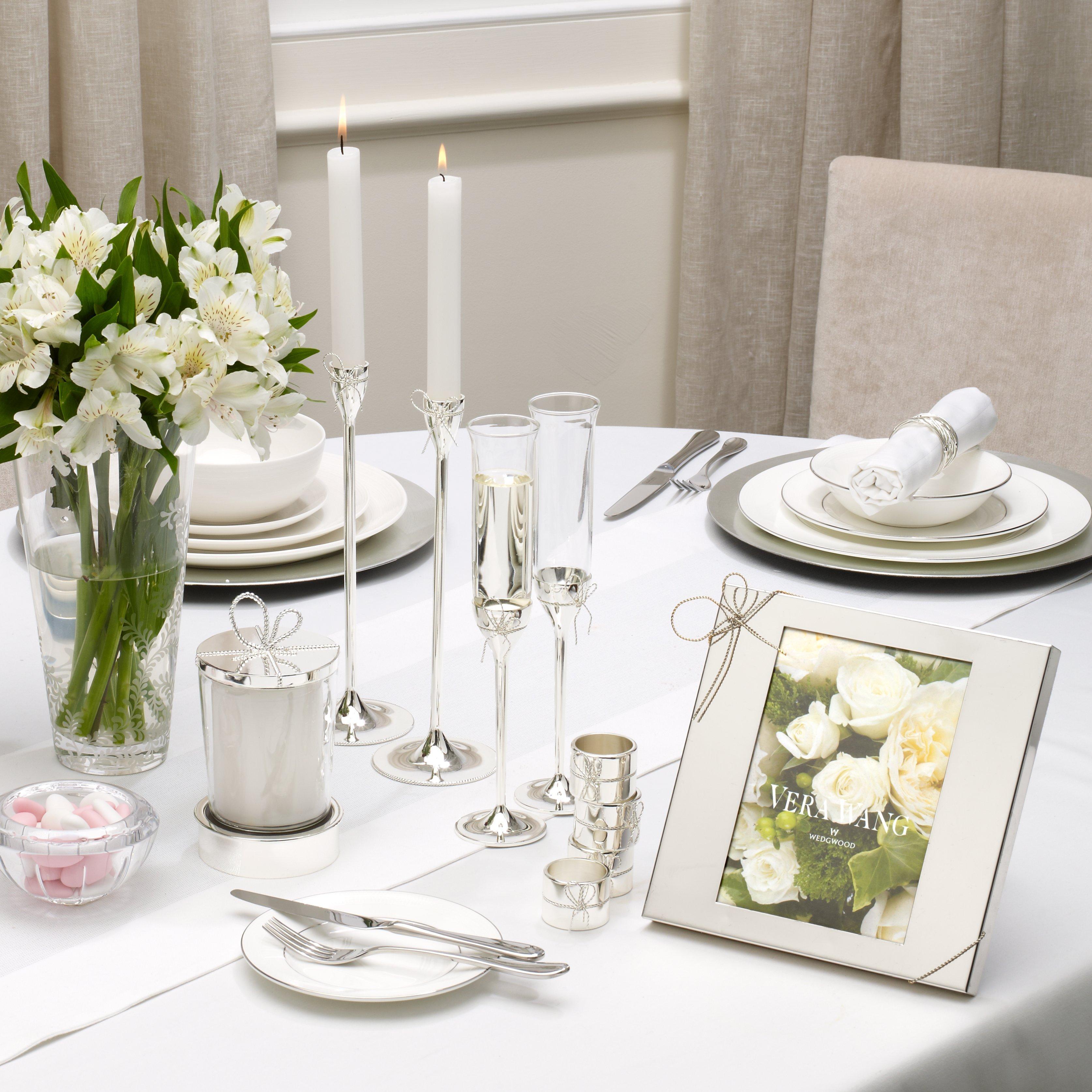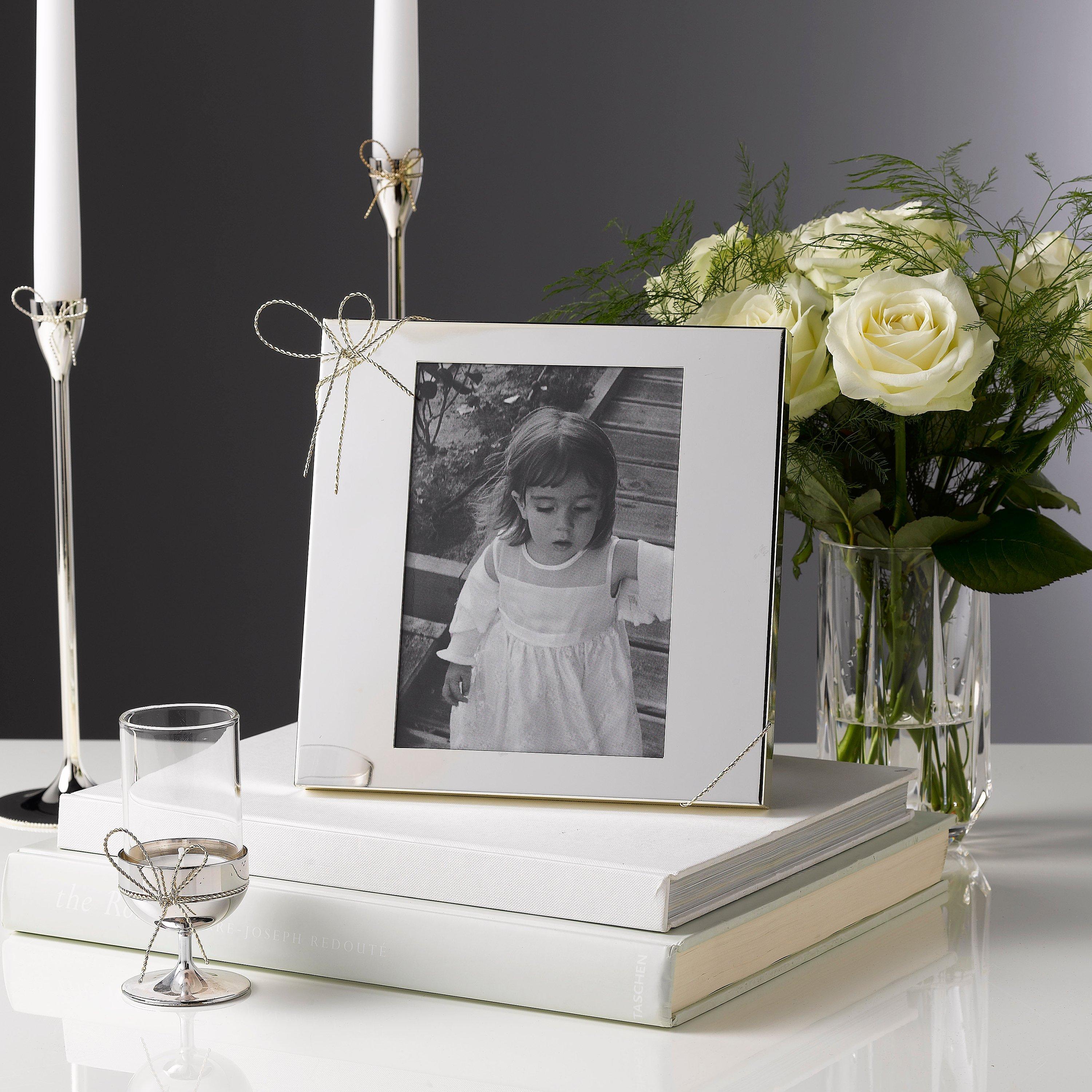 A gorgeous gift, this classic silver-plated photograph frame designed by Vera Wang is decorated with the signature Love Knots twisted ribbon design. Comes in gift box.