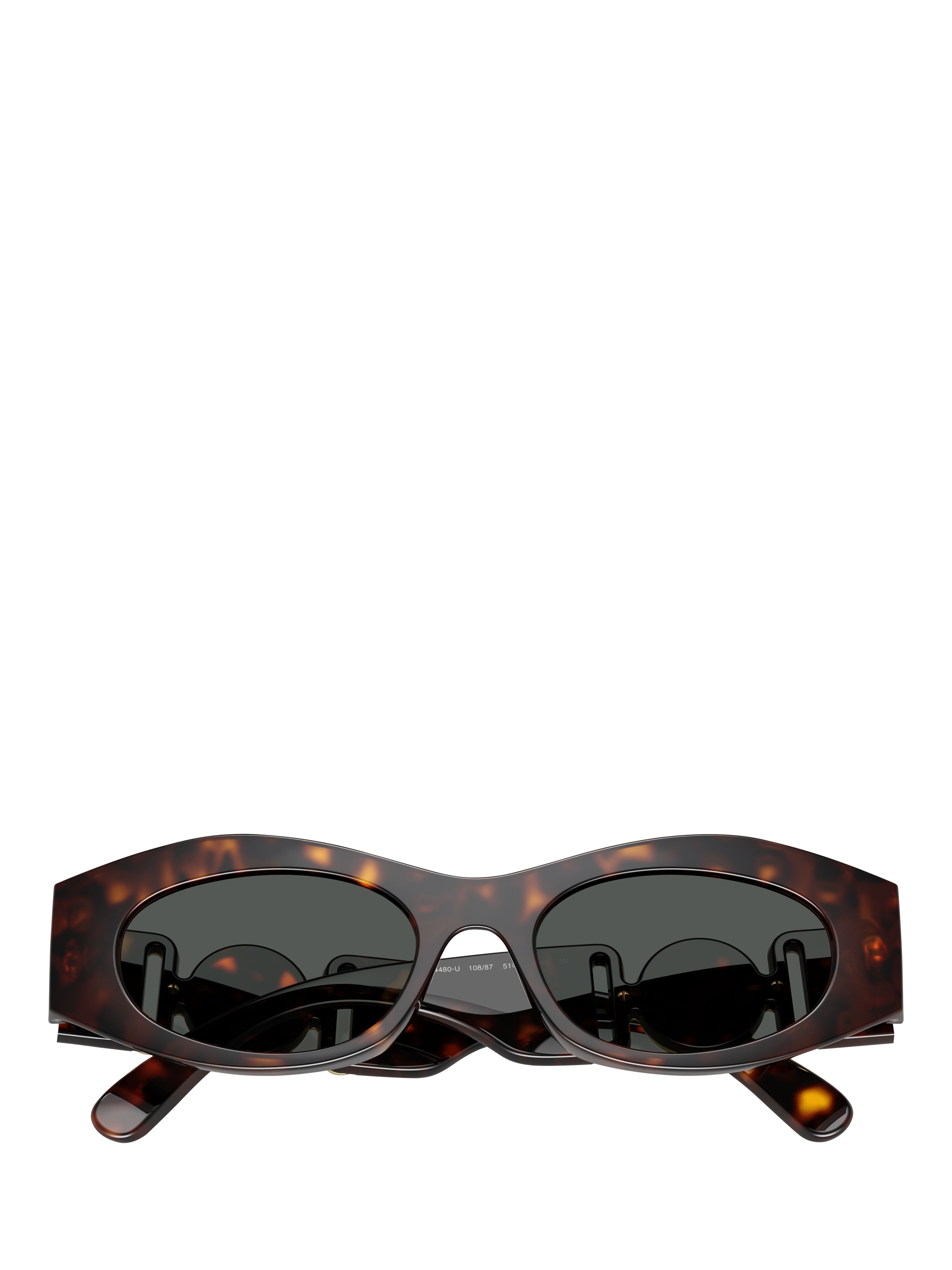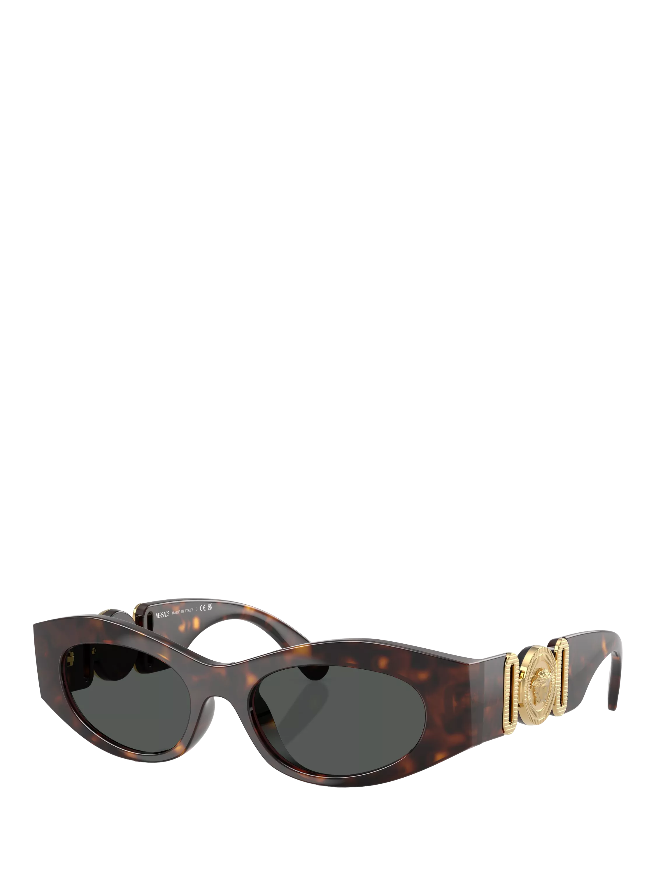 In a streamlined oval frame, these women's sunglasses are designed by Versace. With a polycarbonate makeup and are lightweight and impact-resistant for your peace of mind, this pair have classic tinted lenses.