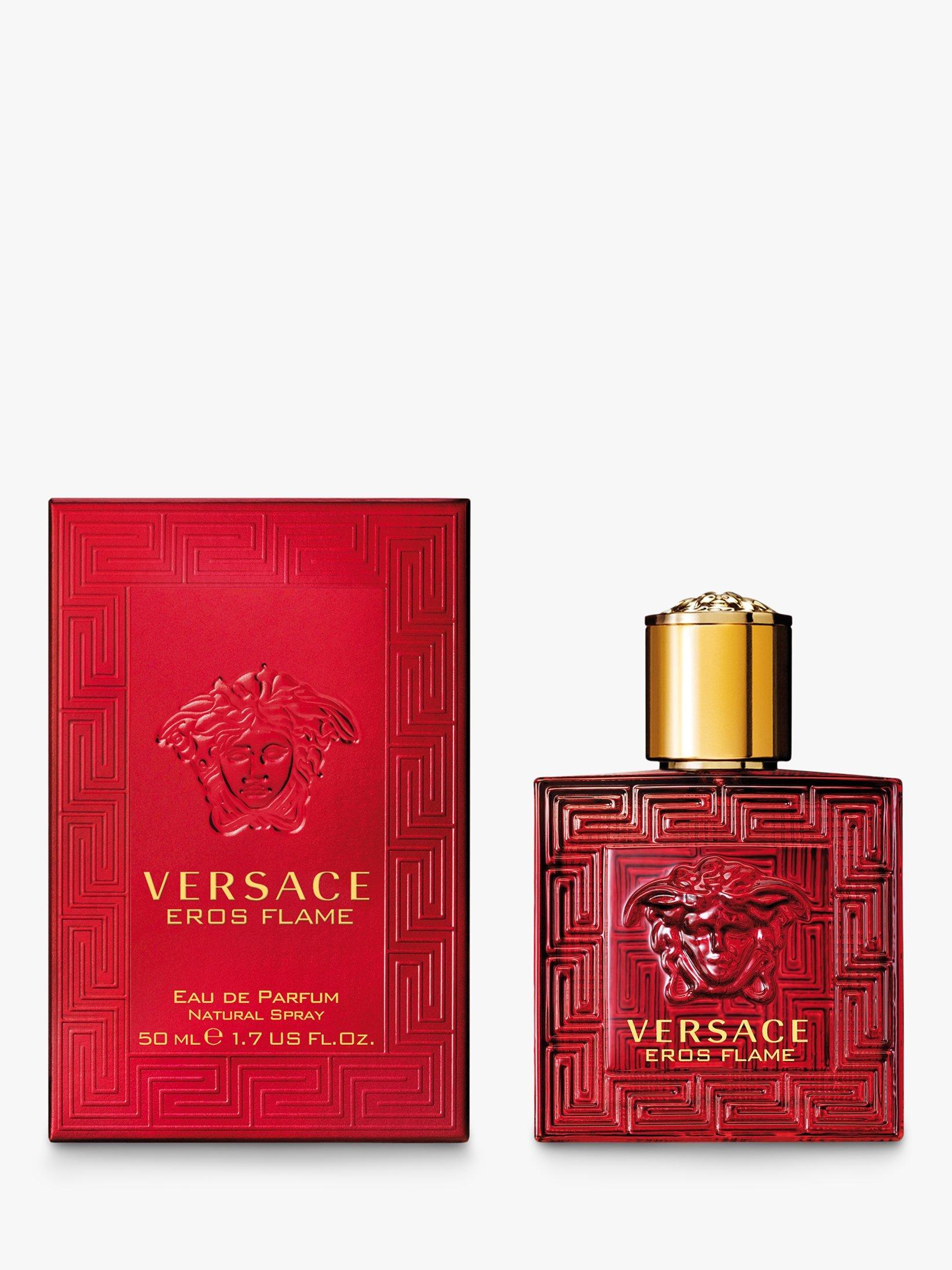 Fiery red, intense and masculine, Eros Flame unequivocally recalls the passion of love and the Medusa head and Greek key motif on the bottle place the fragrance at the very heart of the Versace universe.