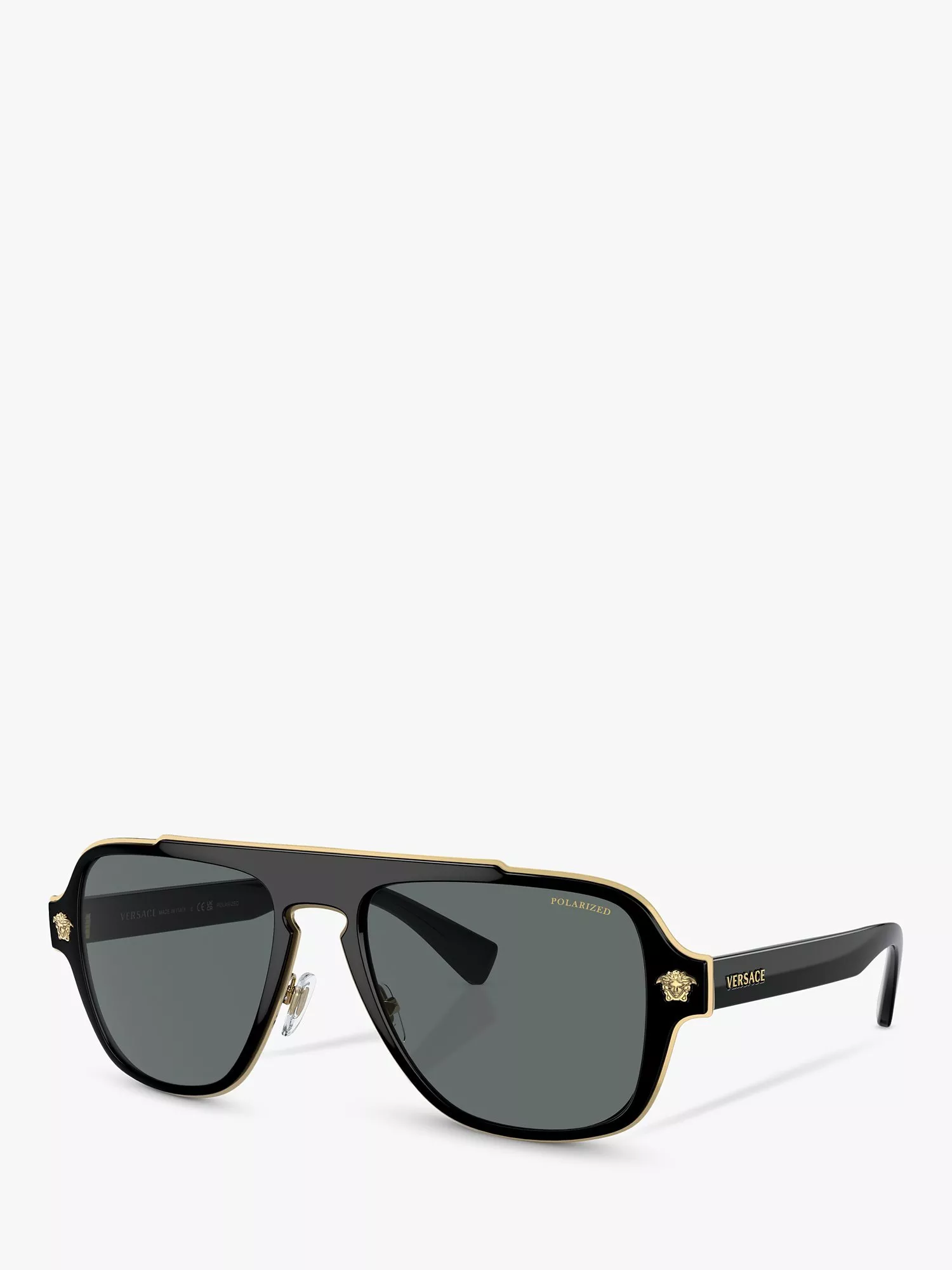 VersaceVE2199 Men's Polarised Geometric Sunglasses, Black/Grey