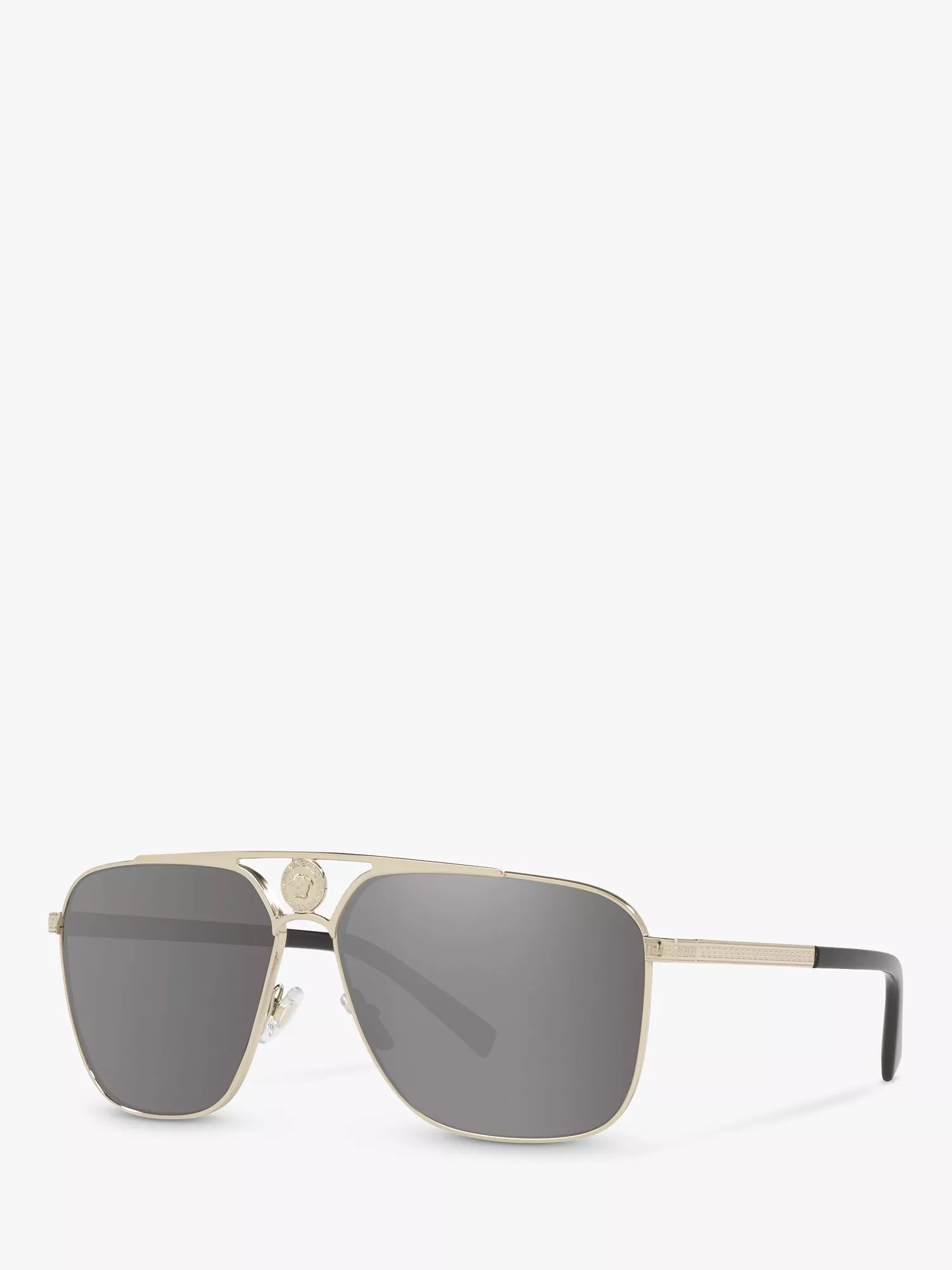 VersaceVE2238 Men's Rectangular Sunglasses, Pale Gold/Mirror Grey