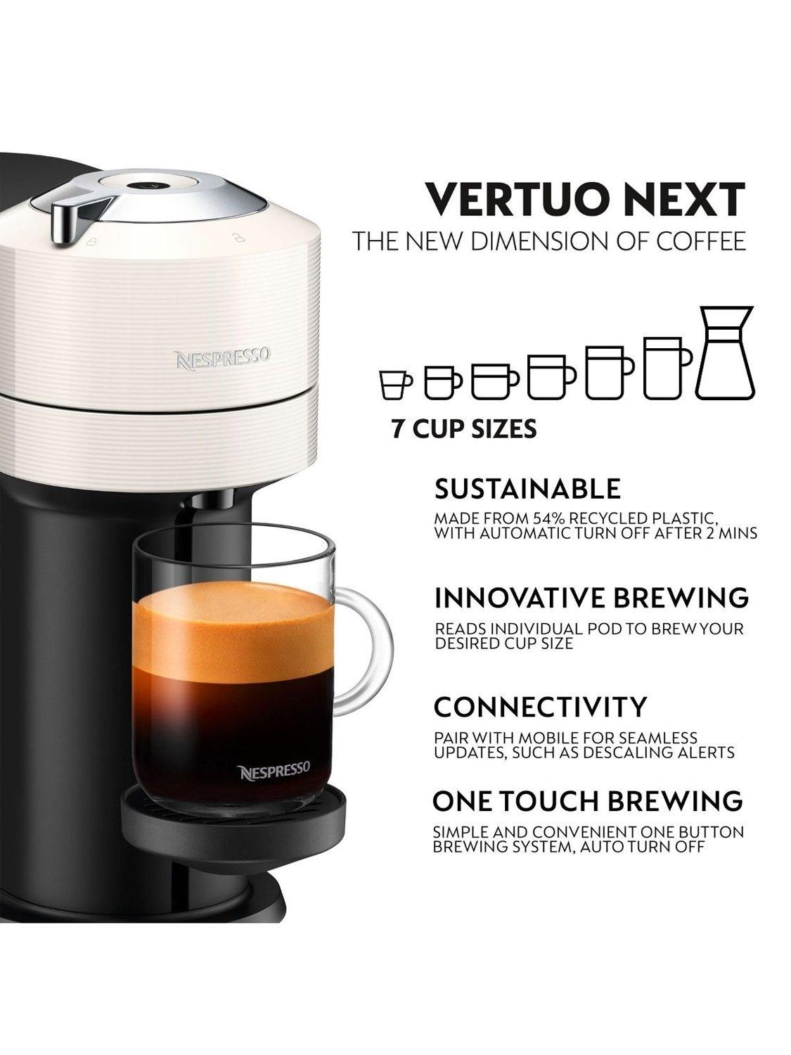 Bring the convenience and choice of the coffee shop home with this Vertuo Next Nespresso Coffee Machine which makes all 7 cup sizes available to you can enjoy the full nespresso coffee experience. Choose from a range of design options to adapt to any space.