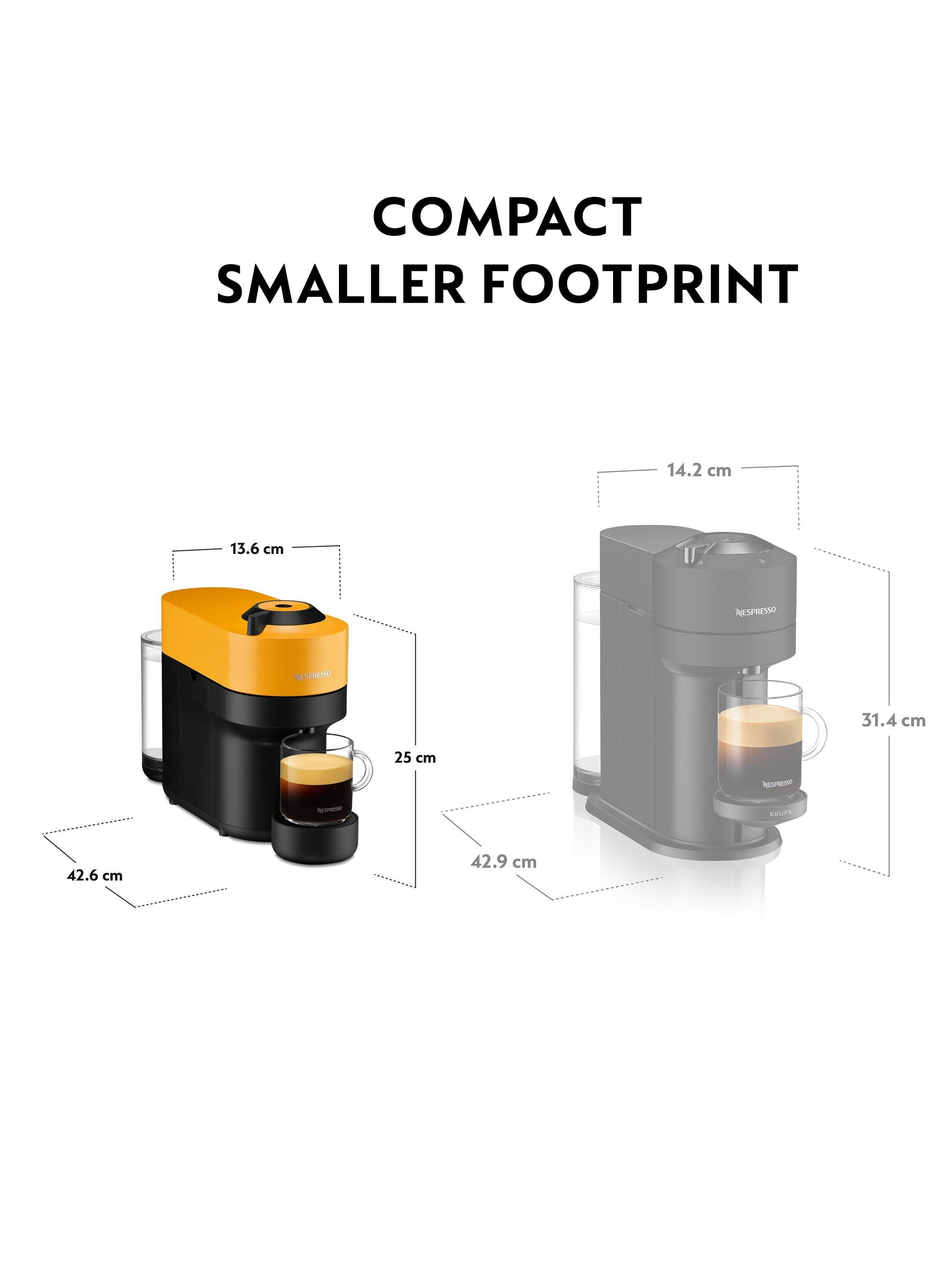 Slip the latest Vertuo Pop into your home coffee corner. Vertuo Pop is big in style but small in its footprint. Keeping low profile at 25cm, the latest Vertuo coffee maker may be a sleek, compact piece of kit, but under that bright burst of colour sits some smart tech.