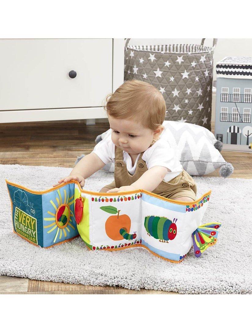 Time for play and discovery with Eric Carle’s The Very Hungry Caterpillar. This adorable, fabric Tiny and Very hungry Caterpillar Unfold and Discover Activity Toy from Rainbow Designs is a wonderful developmental toy to help encourage and explore the bond between baby and parent through play.