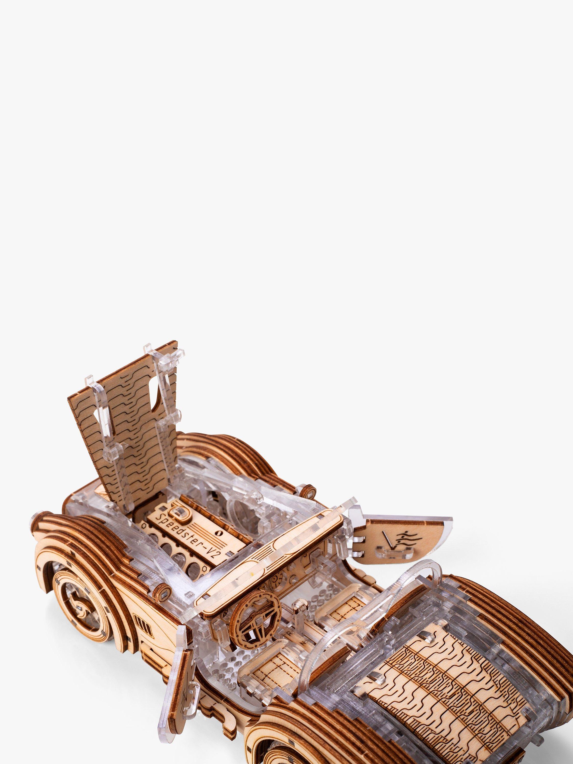 Made with premium, highly durable materials, with a modern combination of wood and transparent plastic, this sports car mechanical model is a way of relaxing your mind and enjoying a DIY handmade project.
