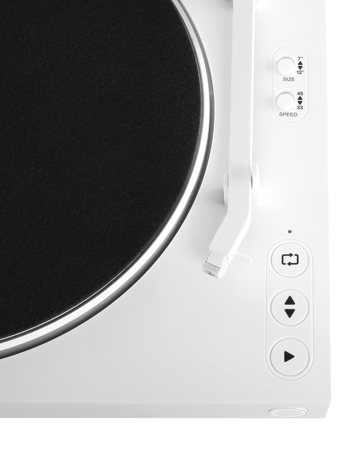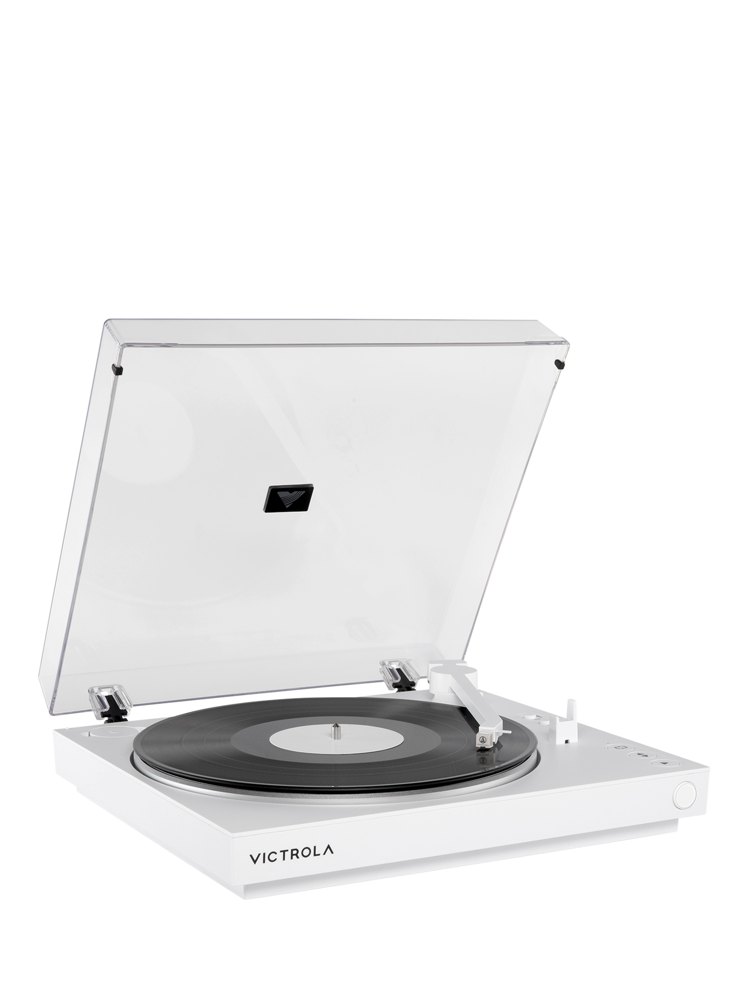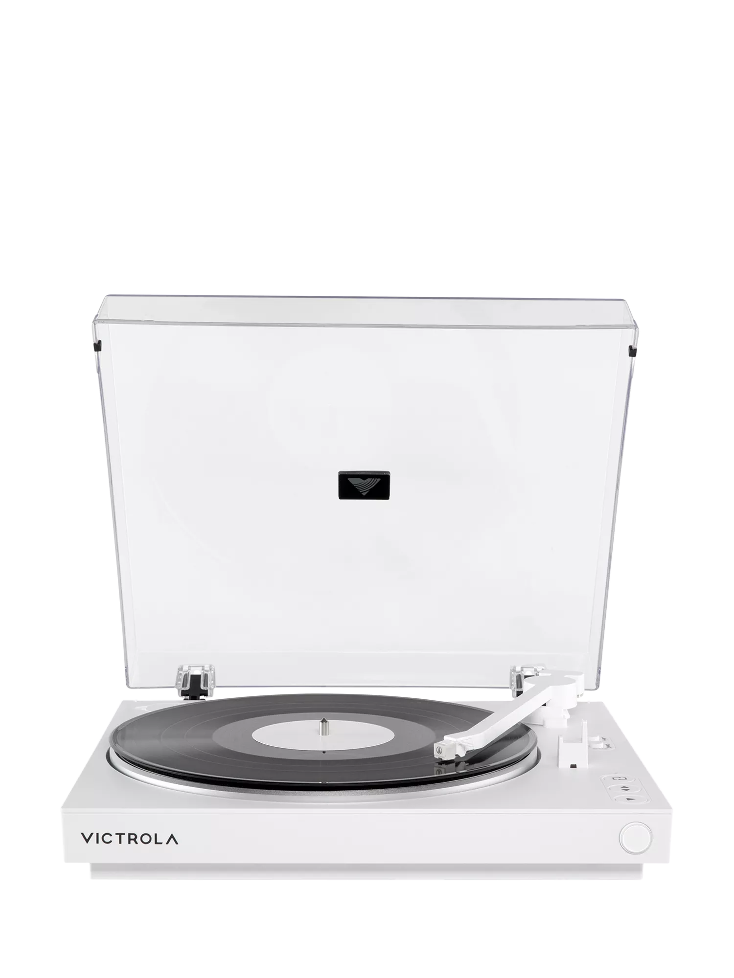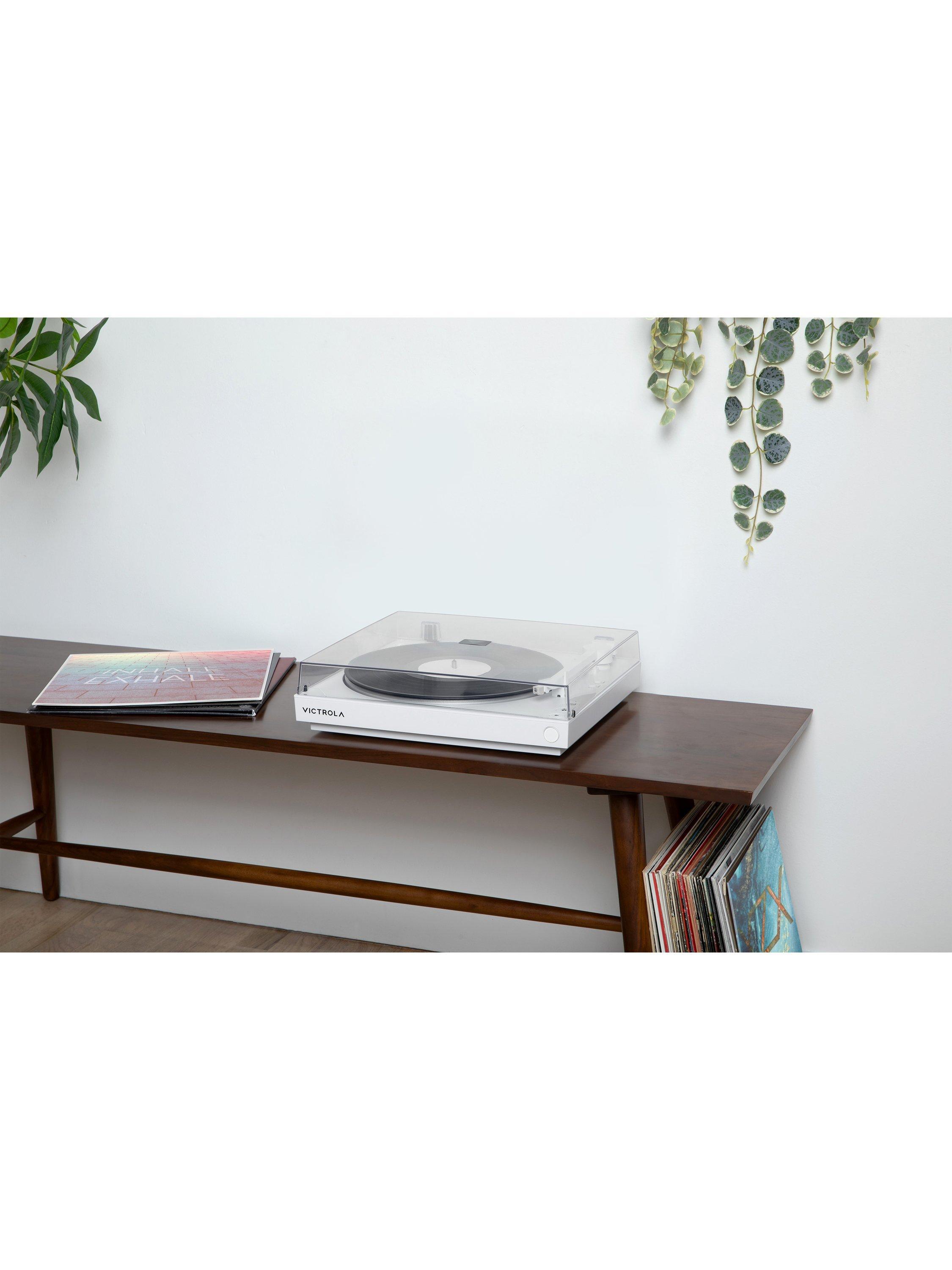 The Victrola Automatic Turntable has fully automatic operation. One-touch start and stop functionality enables effortless, fully automatic playback for a seamless vinyl listening experience, perfect for any skill level.