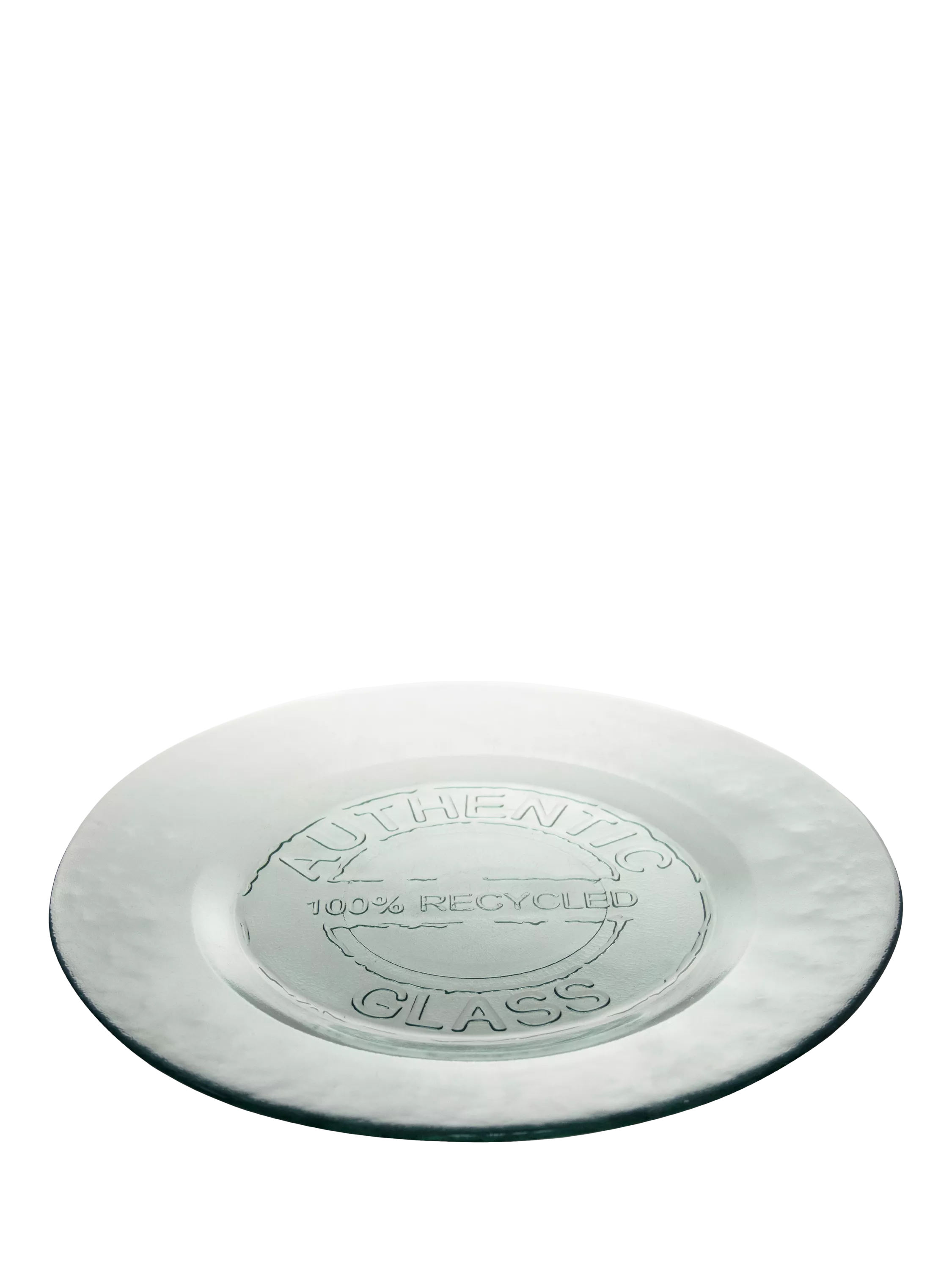 Serve with style and sustainability with this glass plate made from recycled glass. The green hue of the glass is a natural characteristic of 100% post-consumer recycled glass. Made in Spain by Vidrios San Miguel. Dishwasher-safe.