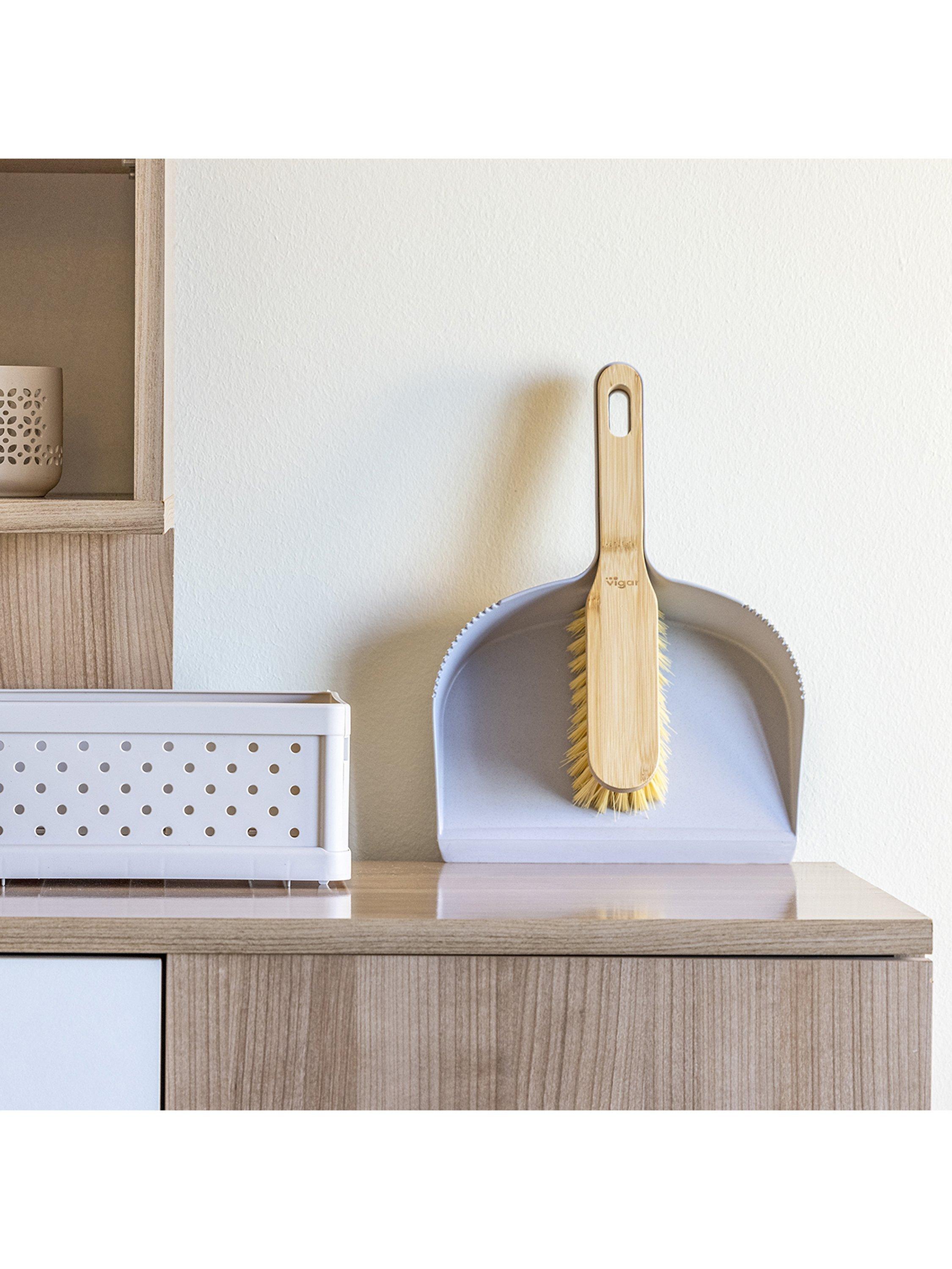 This dustpan and broom set contains bioplastics, processed natural bamboo and recycled PET.