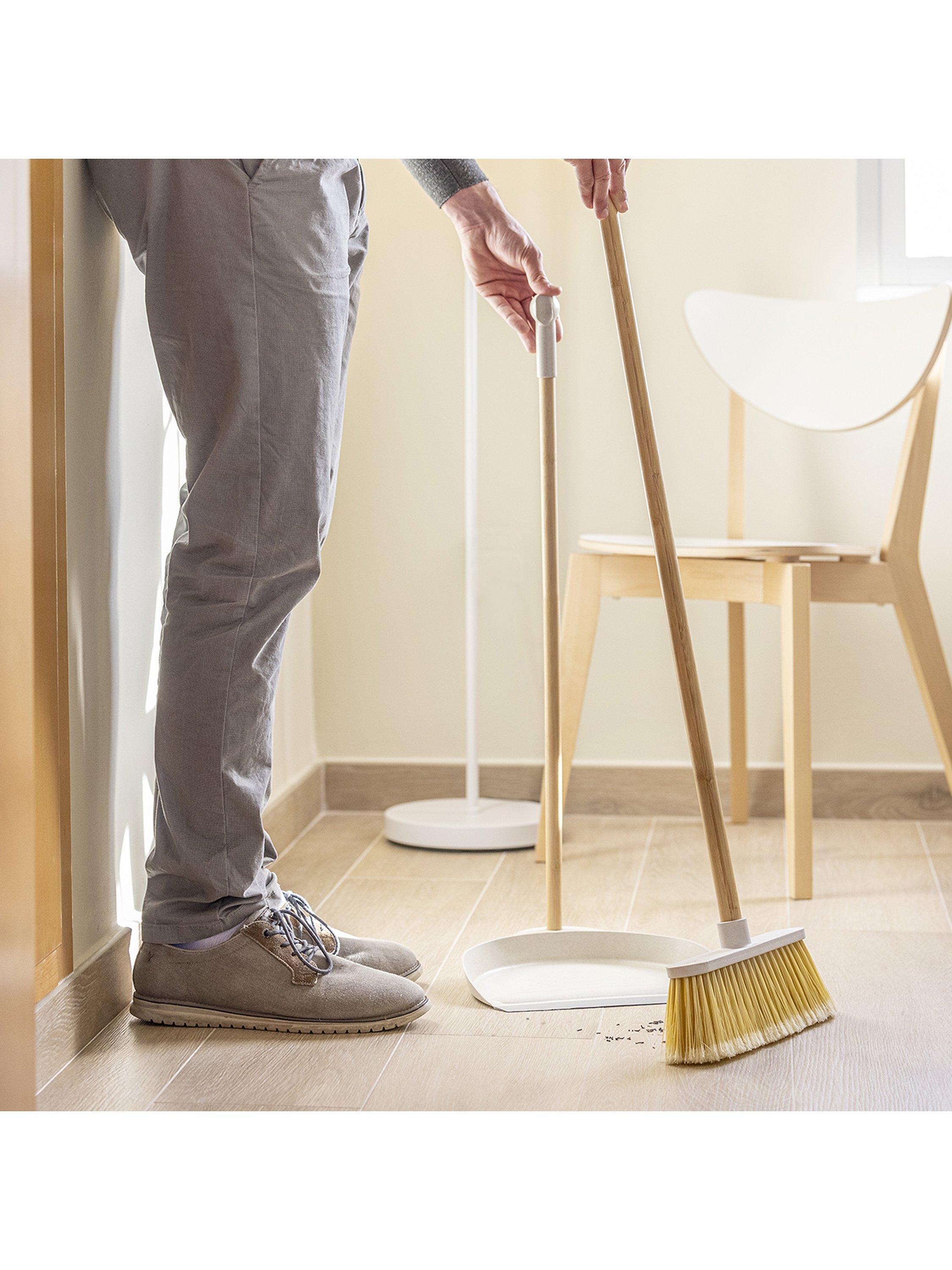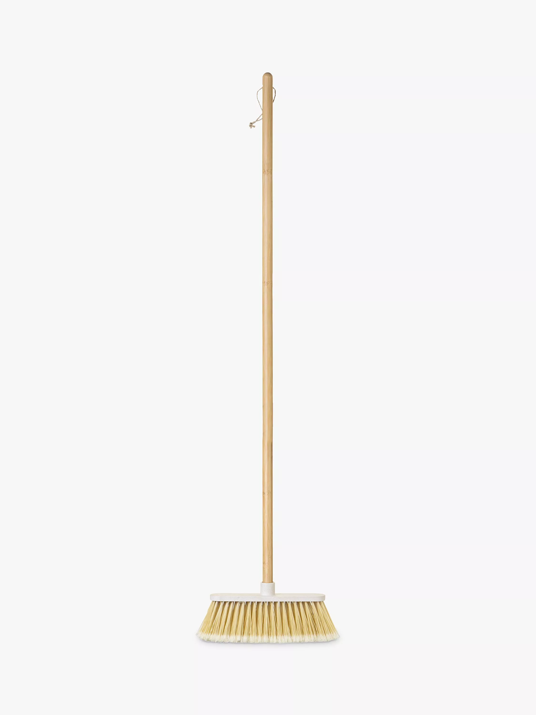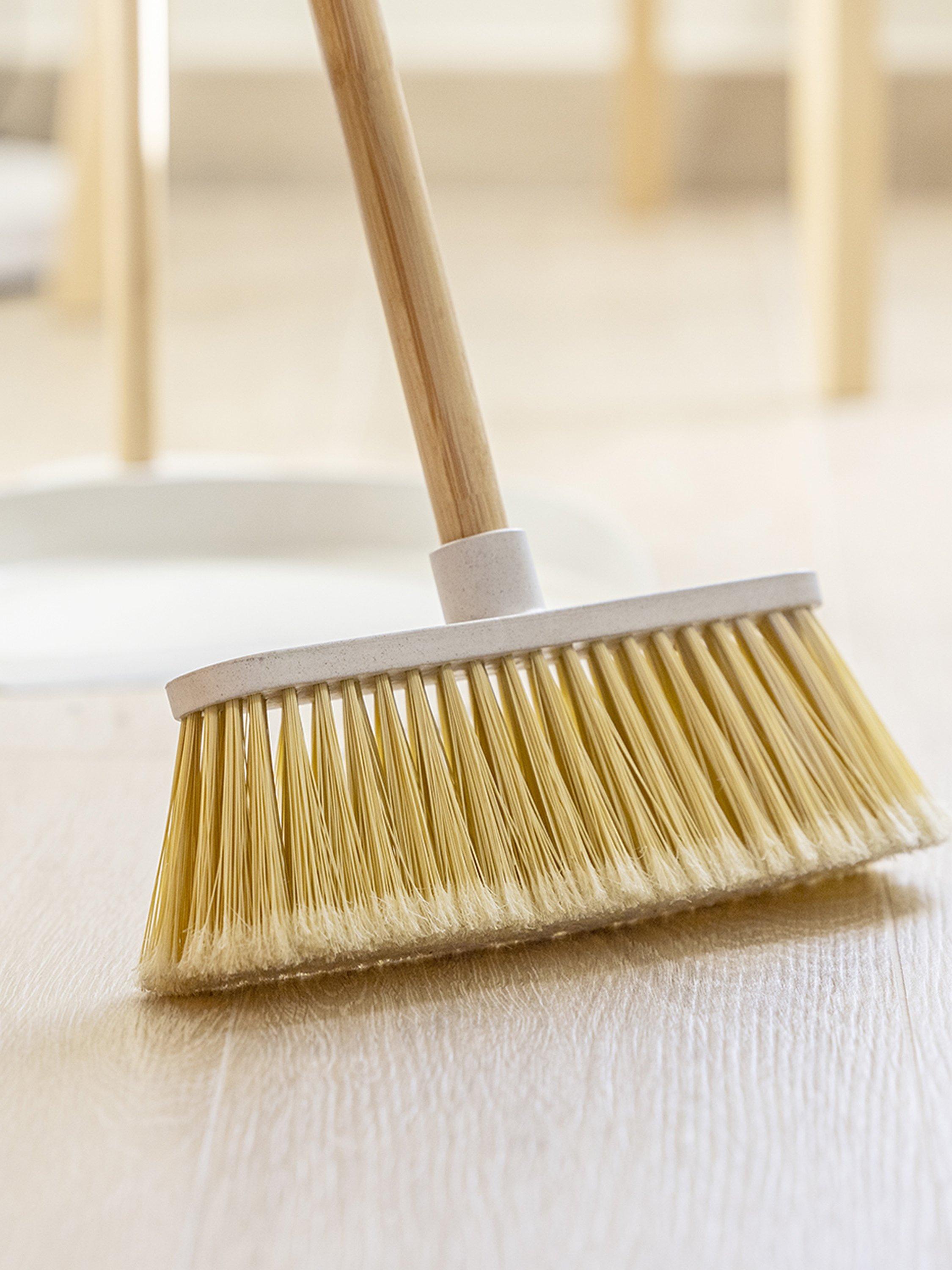 A durable broom with a processed natural bamboo handle and a dowel made from bioplastics.This broom features a large sweeping width and blunt fibres to trap dirt more effectively, with an easy-to-use universal thread for quick installation.