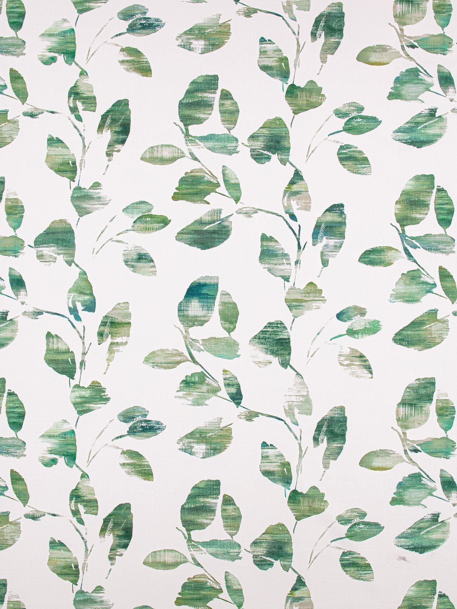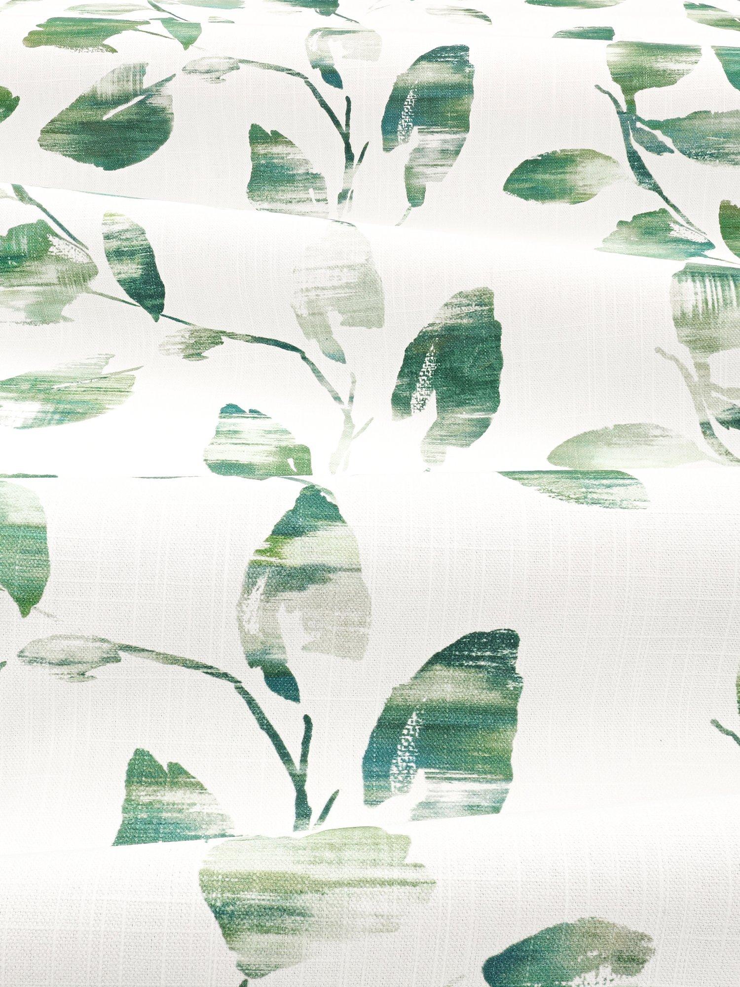 An elegant leaf trail overlaid with brush strokes that blend to create intriguing watercolour effects with variations in tone and opacity, digitally printed on a supple cotton.