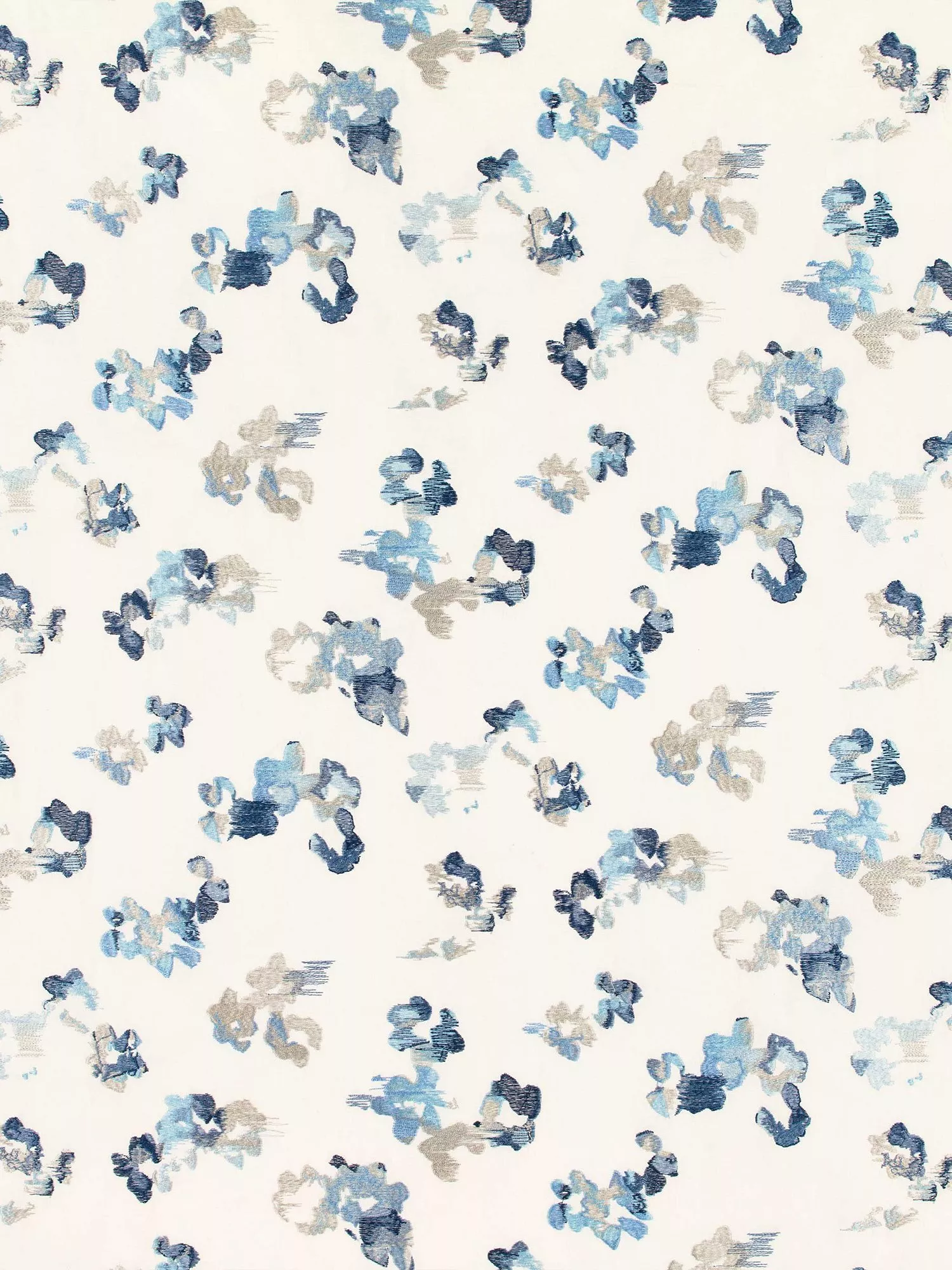 A vibrant floral, designed with overlapping blooms with a watercolour effect and a mix of contrasting shades. This abstract floral is embroidered on a soft cotton.