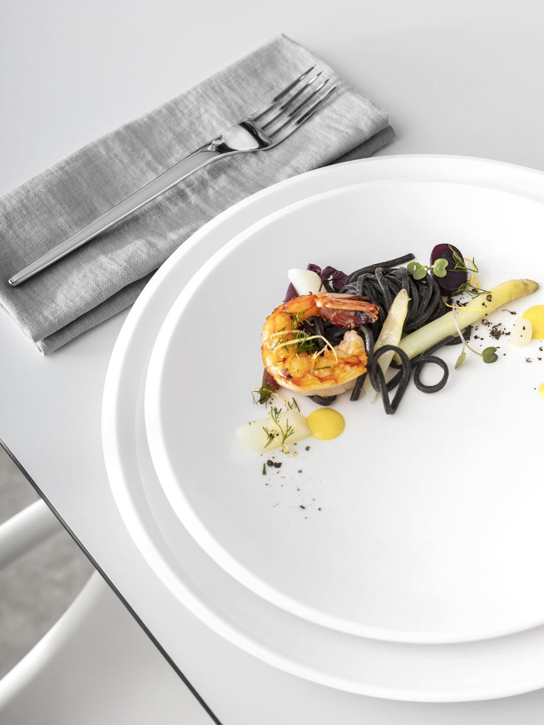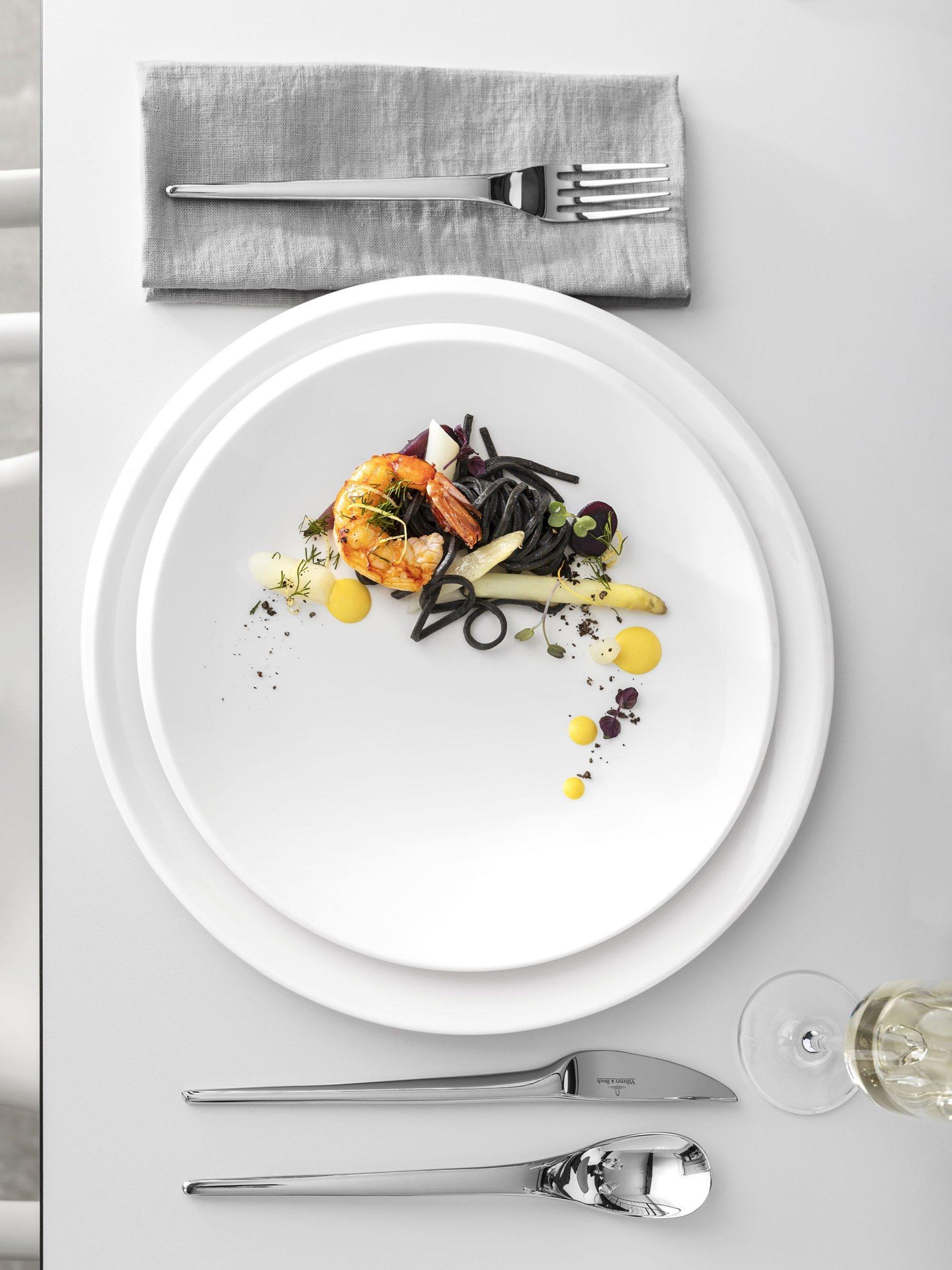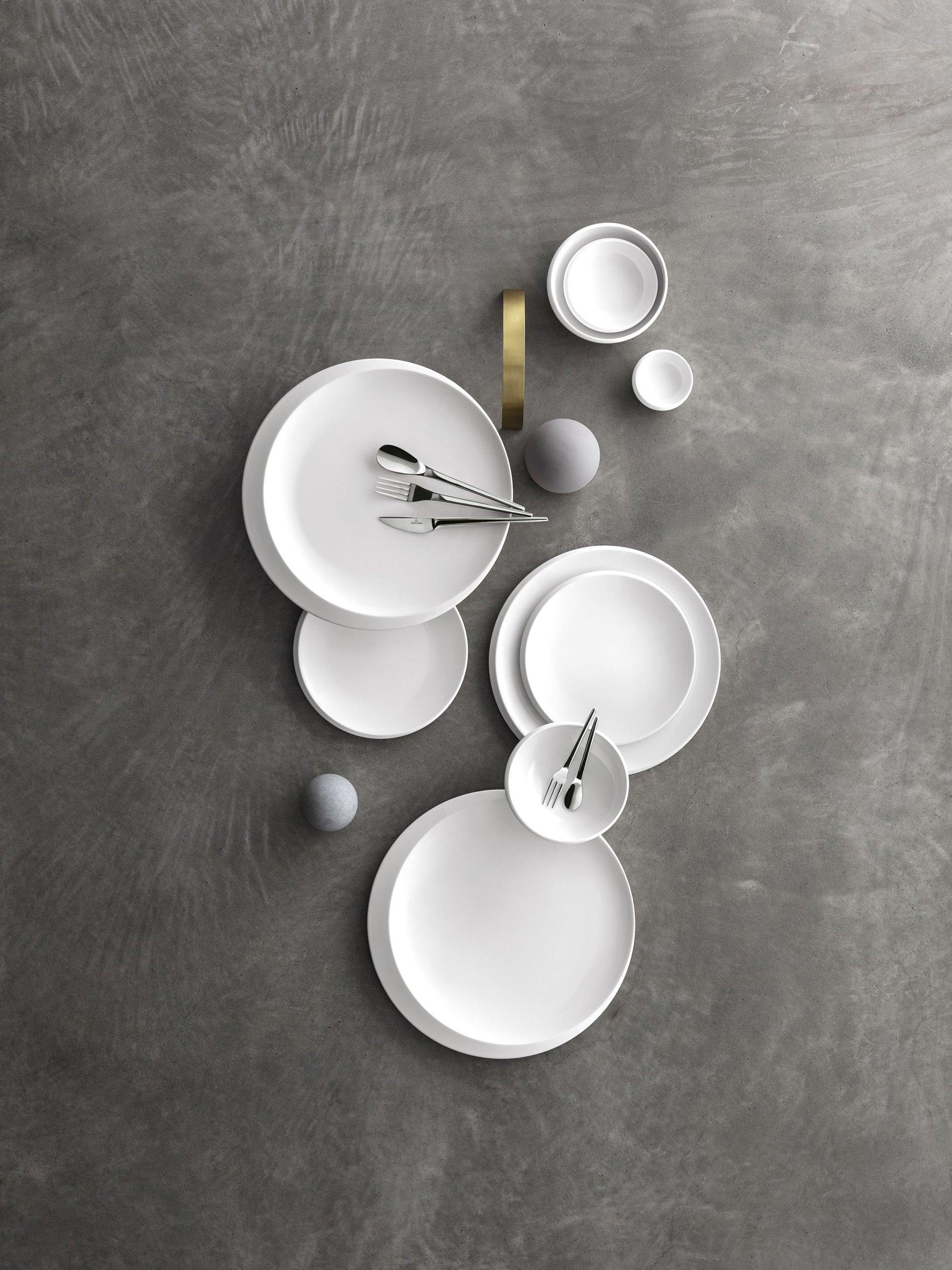 The NewMoon collection reflects the fascination of the moon. Influenced by the planet's gracefulness, the pared-down design features asymmetrical shapes to mimic the look of the moon. Villeroy & Boch has been synonymous with such expressive porcelain of the highest quality since 1748.