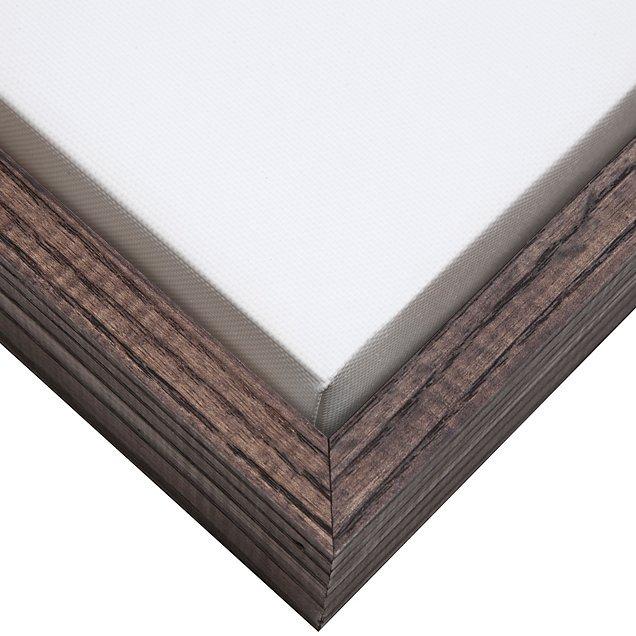 - Rim: A stretched canvas print sat in a chunky and substantial wooden panel. Creates a ‘boxed’ look when hung from the wall.