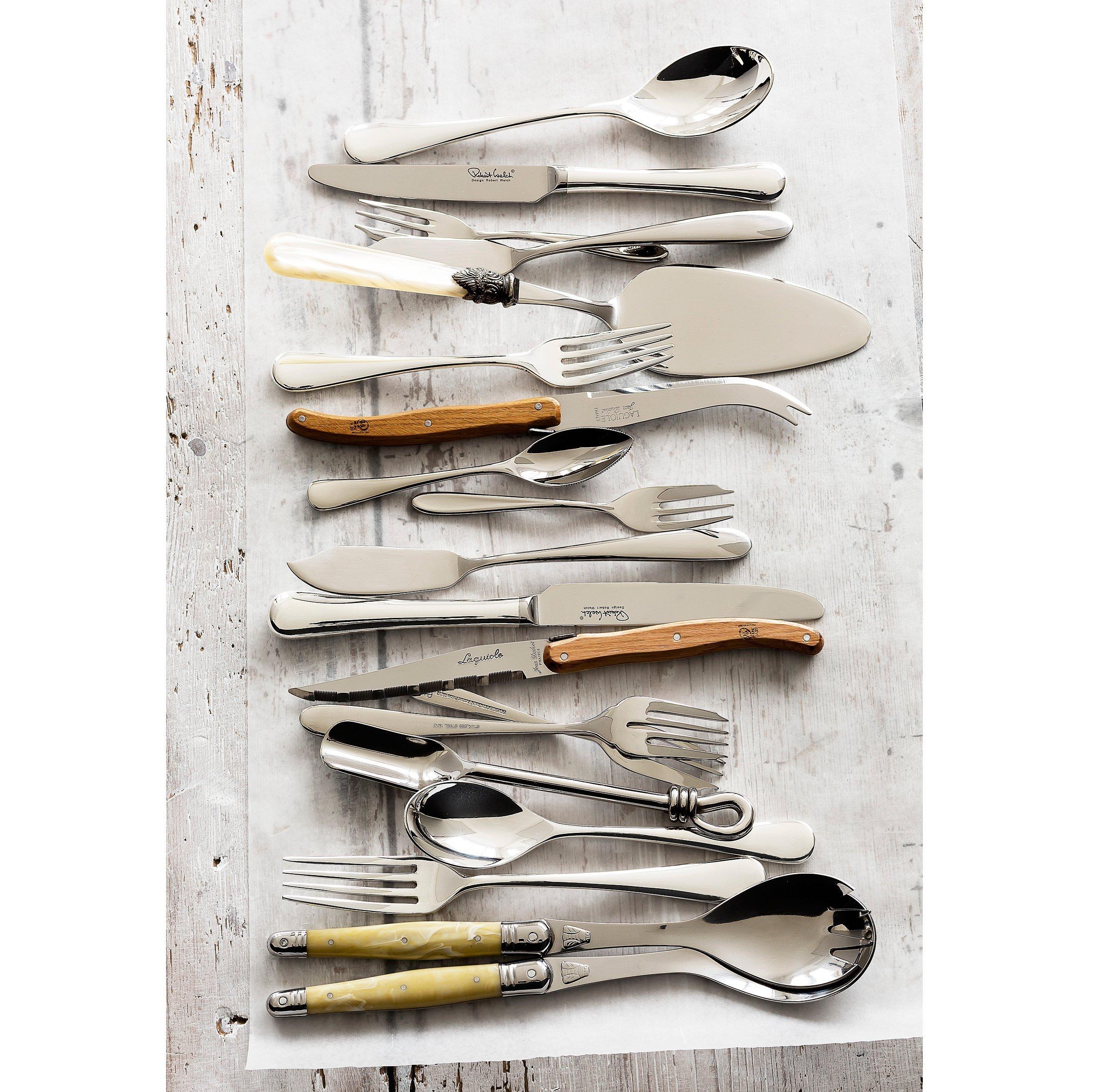 Inspired by the look of Victorian ivory cutlery, this vintage-style range offers a touch of pretty period style to your dinner table. Each piece is crafted from durable stainless steel and the smooth handles are made from hard-wearing metal acrylic complete with a swirling ivory-effect aesthetic, offering each piece a unique look. This range is ideal for injecting some high glamour into your dining.