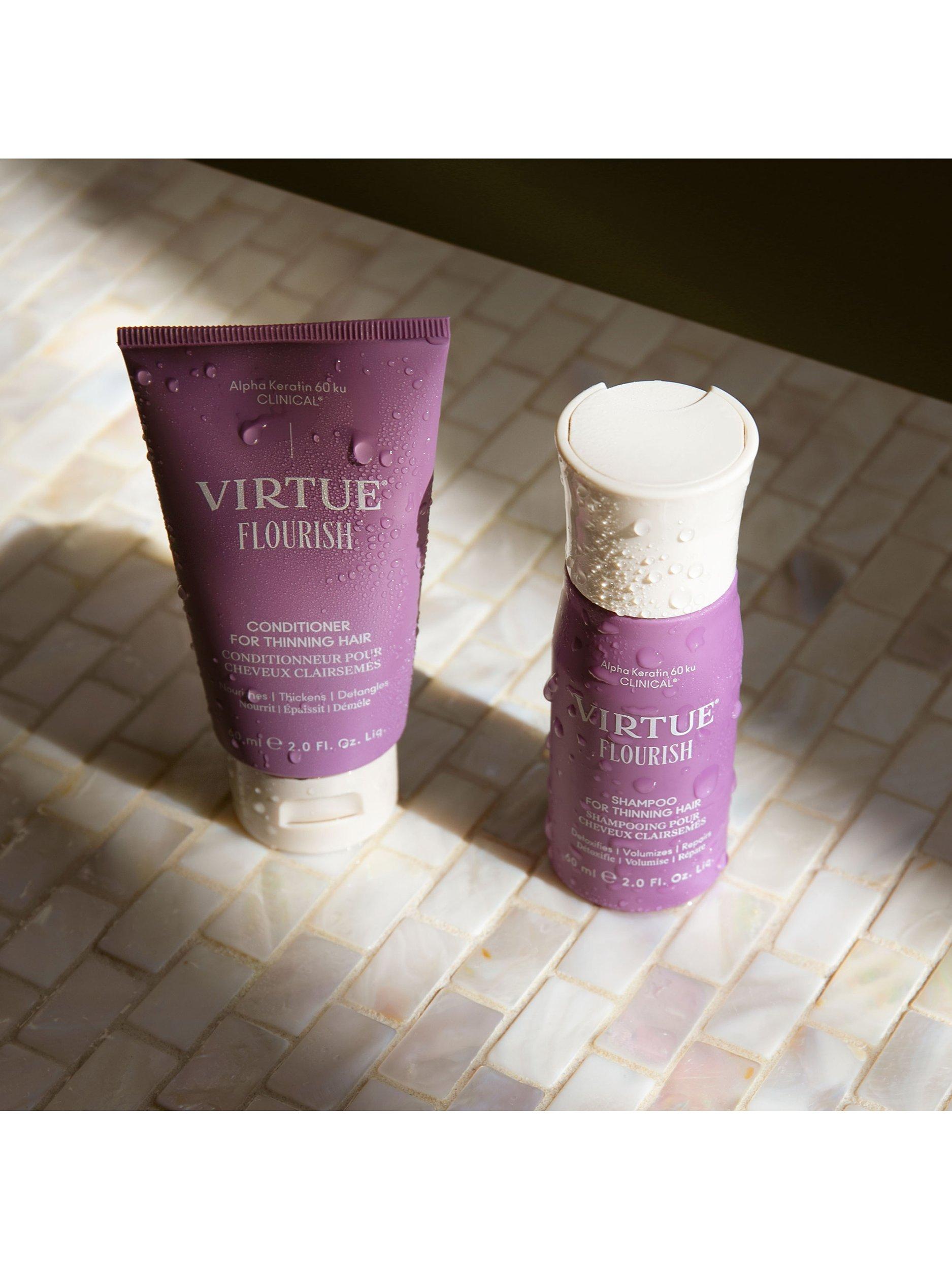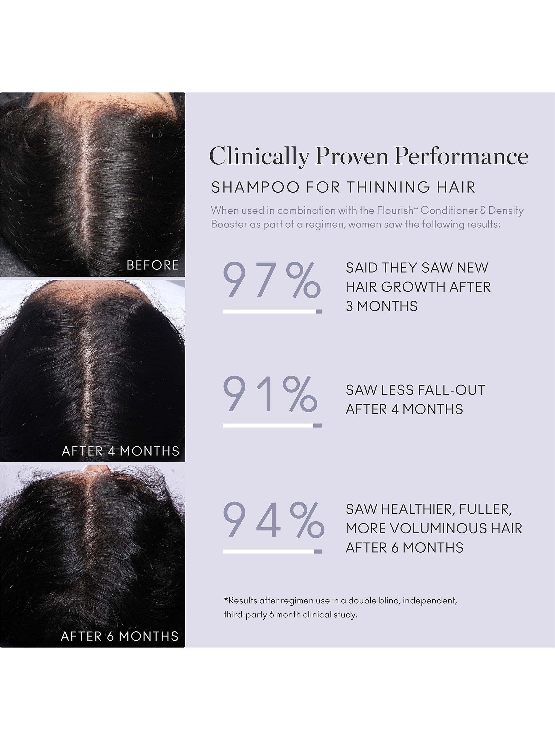Flourish® Shampoo for Thinning Hair removes scalp buildup, cleanses the hair shaft, and clears debris from follicle openings, creating an environment for healthy growth.